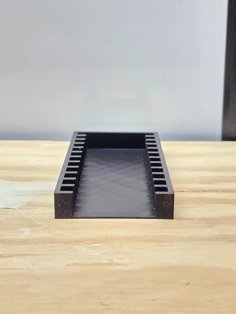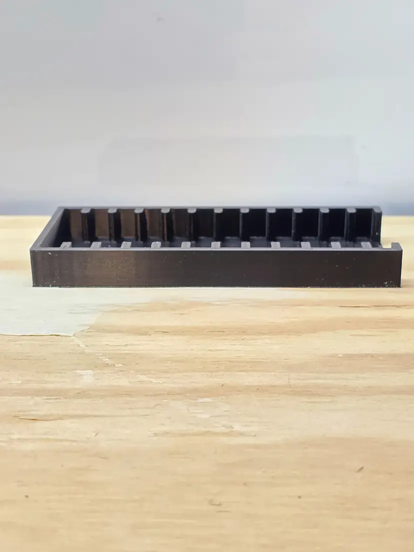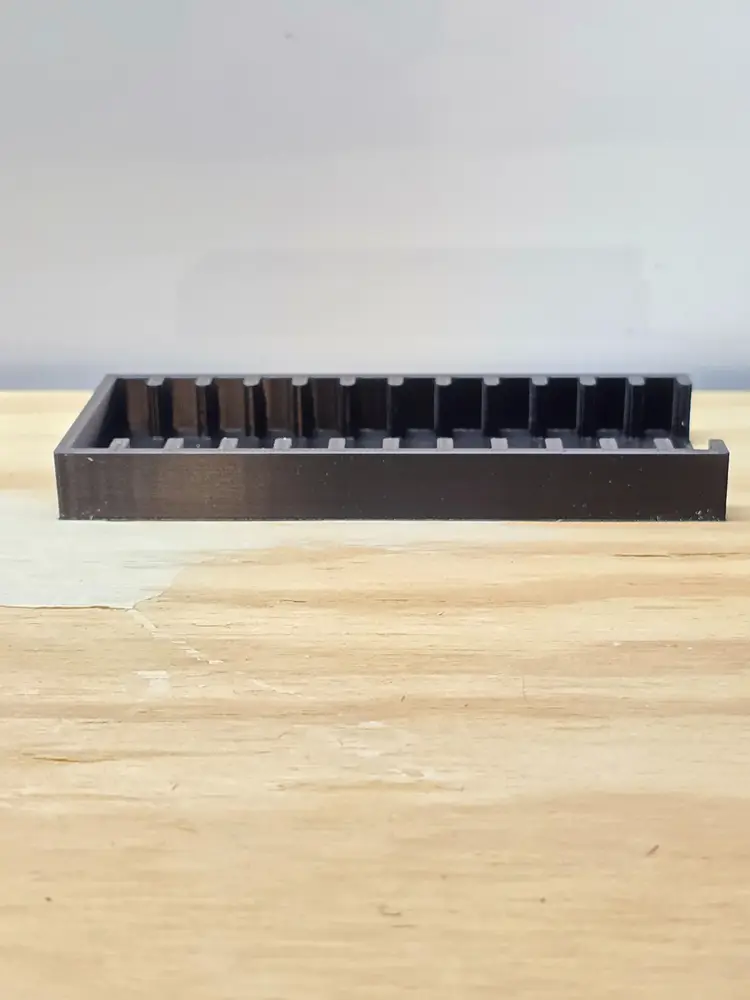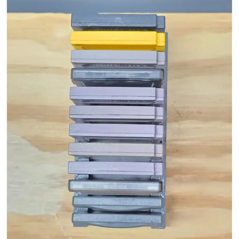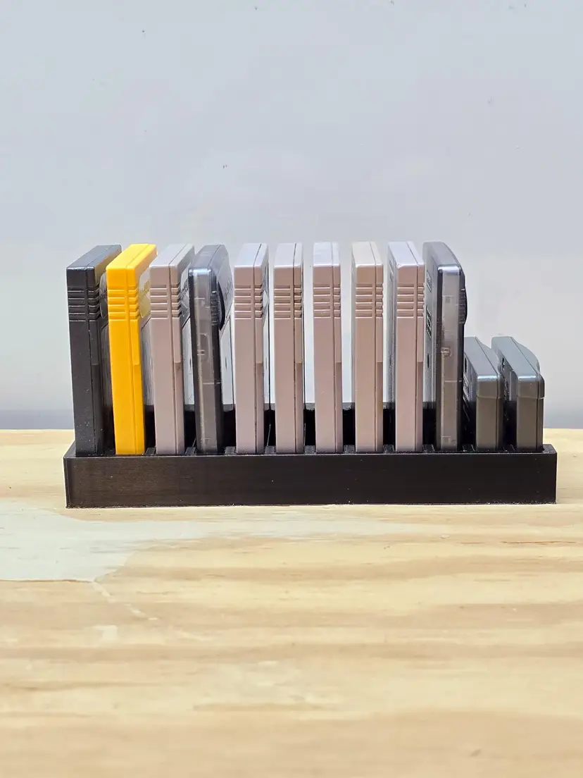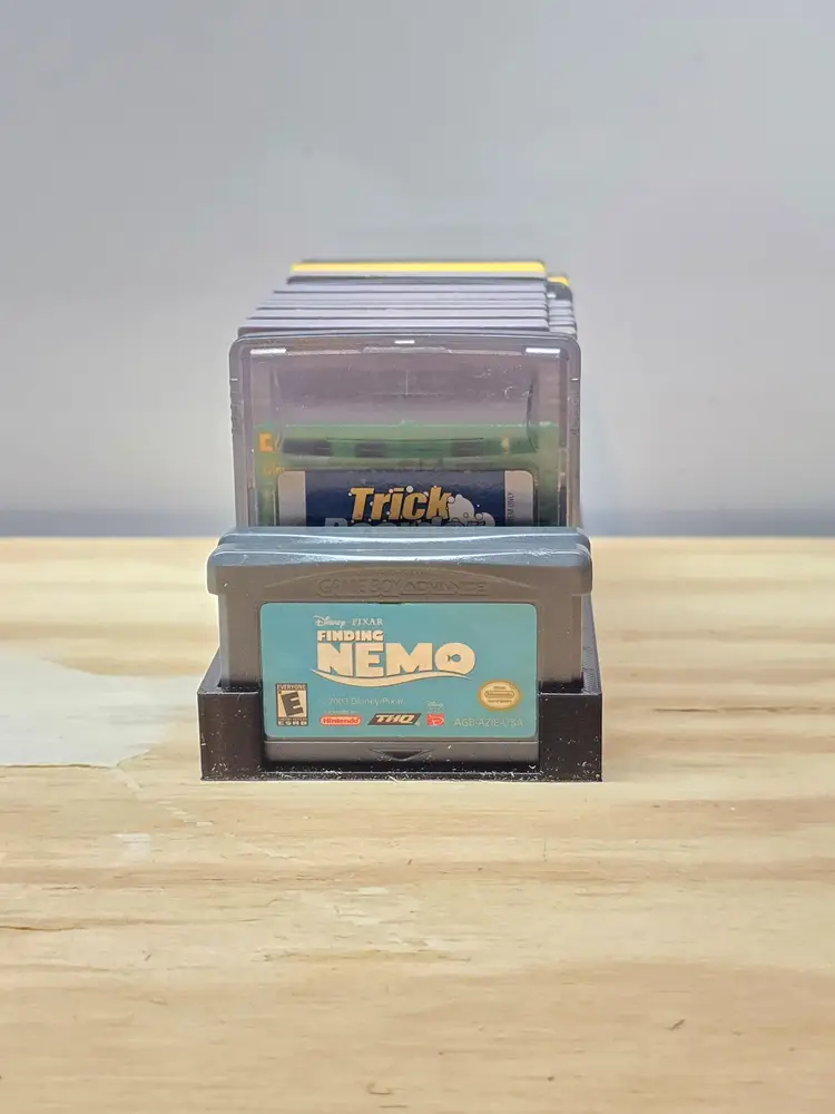 Gameboy - GBC - GBA Video Game Storage Tray. This storage tray holds 6 Games. All game trays are designed to fit nicely on a 6" shelf or fit nicely on a 12" deep shelf when using 2.