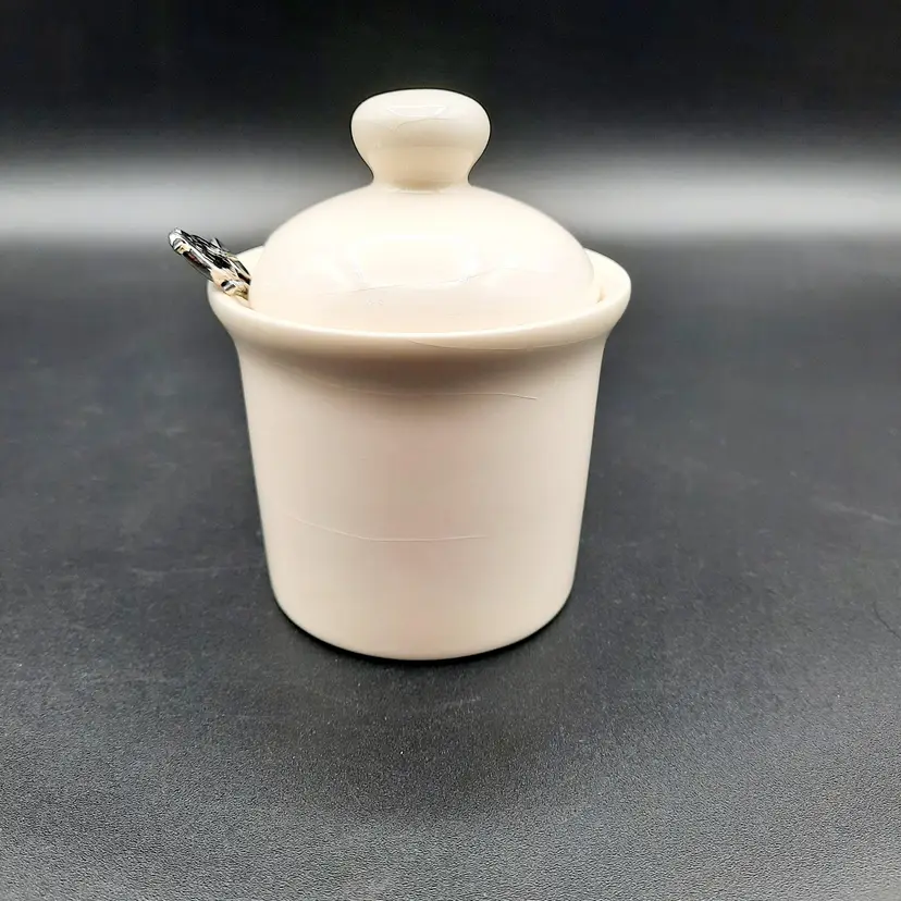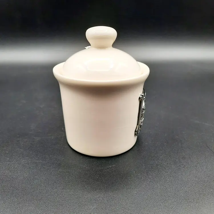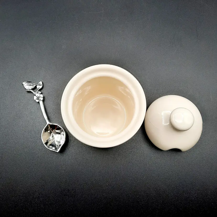 This sweet little jar is 4"H x 2 1/2"W, does have crazing on jar and lid, and small area on jar by bird's tail looks like there is a bit of yellowed glue.