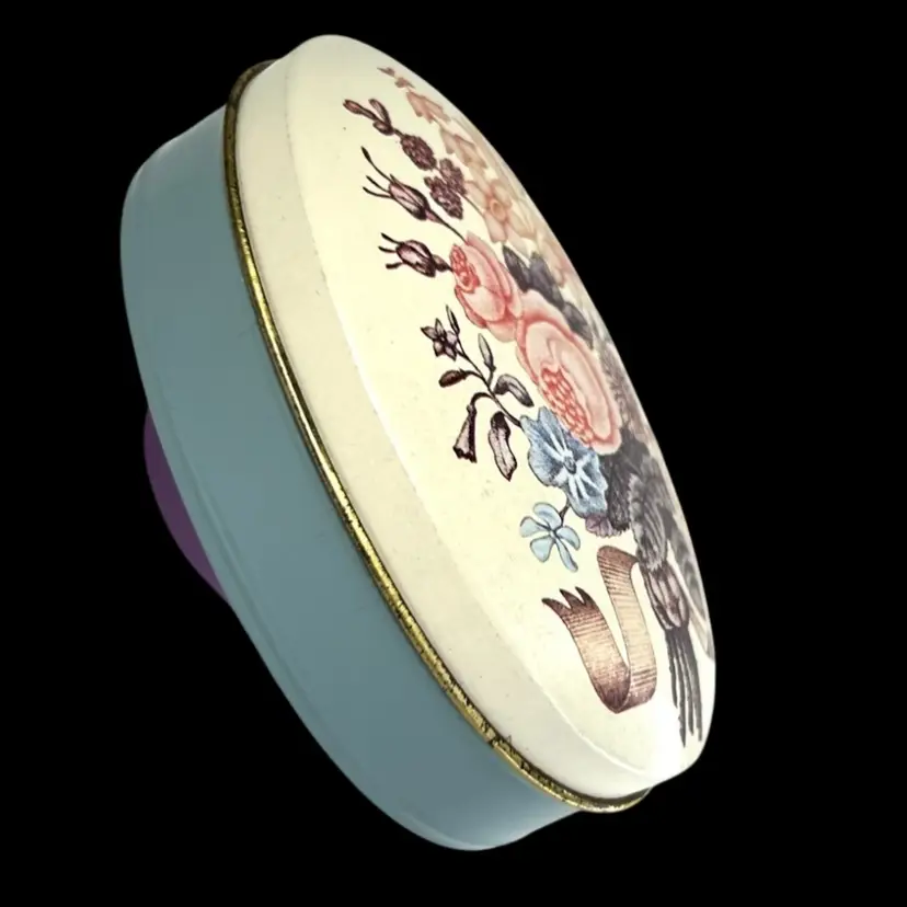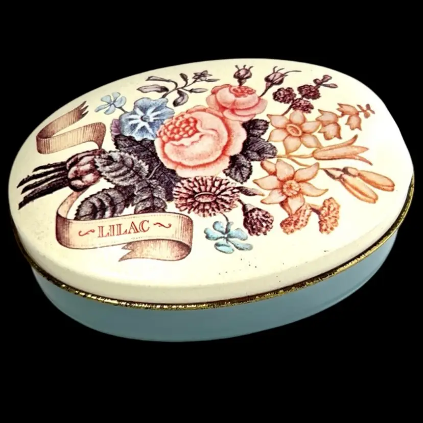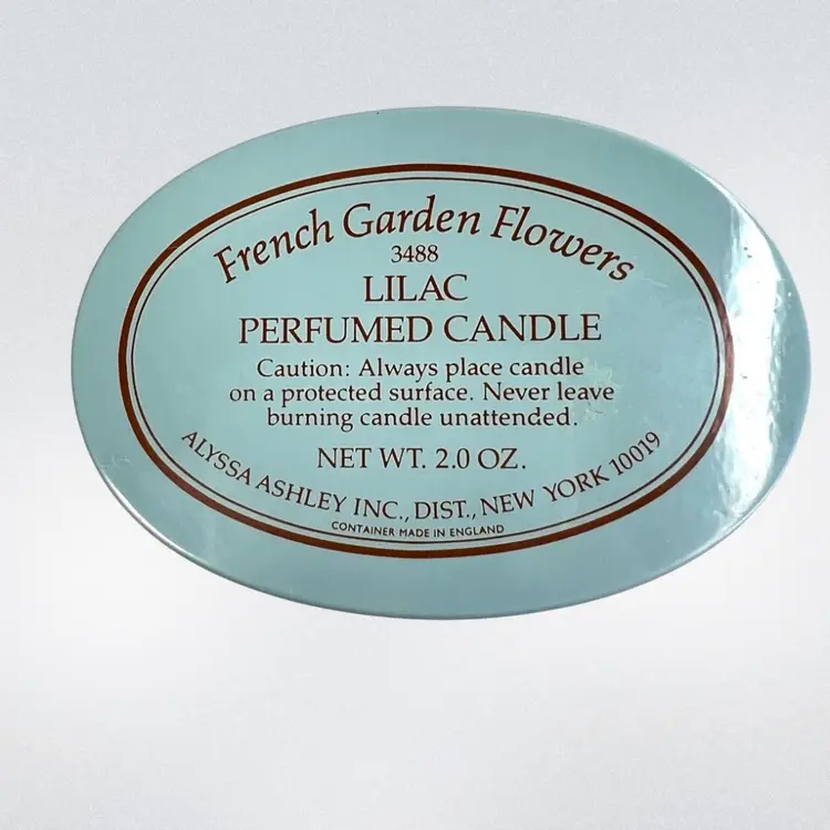 First-time buyer on District? Use code: JUNKIN for $5 discount ($10 min). Enter at checkout or to wallet during a live auction. Weighs 4 ounces 3-1/3” x 2-1/2” x 1-3/8” Cottage Core Lovely Metal Tin Blue Tin with Garden Flowers on Lid Lilac Scented Candle Bottom of tin printed- French Garden Flowers Lilac Scented Candle Alyssa Ashley 2.0 ounces Tin made in England Condition: very light surface rust patina on lid rim - see photos (side angle is best viewing)