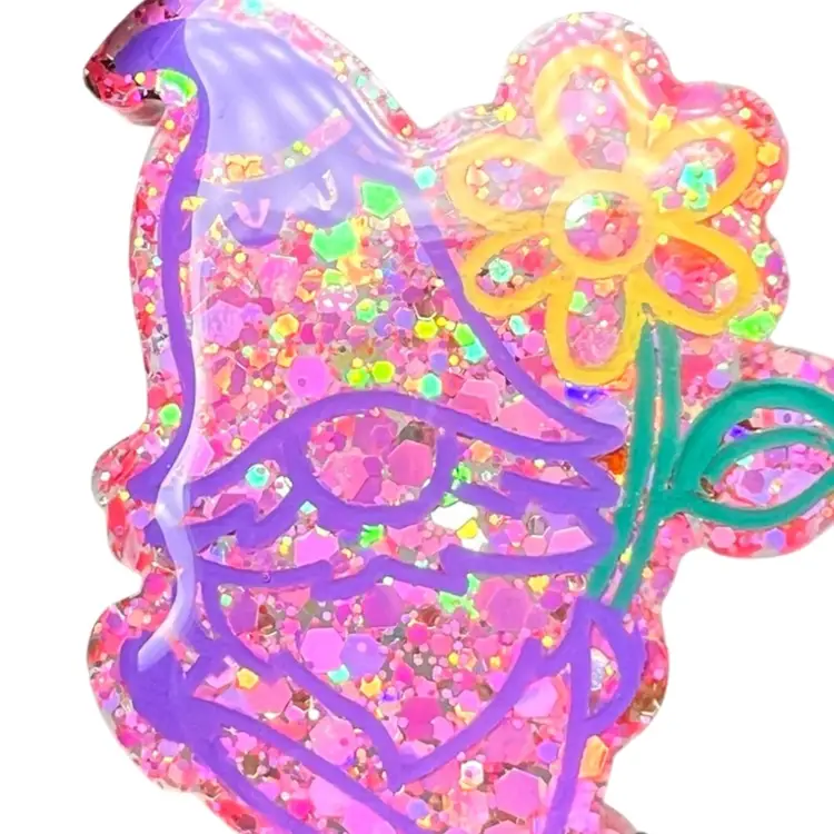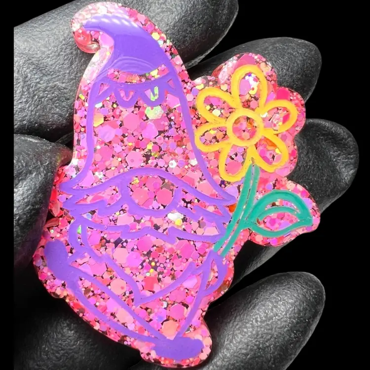 Handmade by me 🫶 Resin and pretty pink glitter Hand-painted and sealed Strong neodymium 🧲 magnet 1-3/4” long x 1-3/4” wide