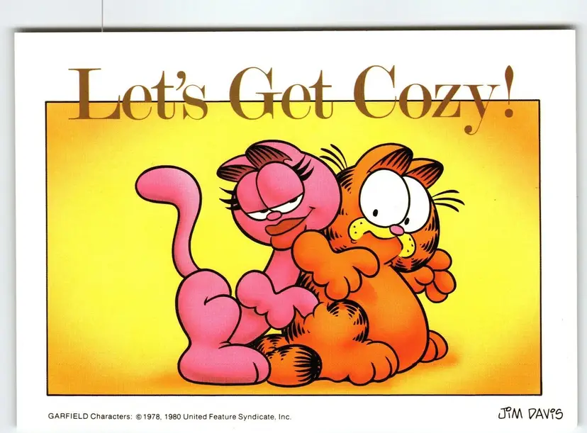 Garfield & Arlene Let's Get Cozy Postcard Signed Jim Davis Comic Cat 1978 Unused