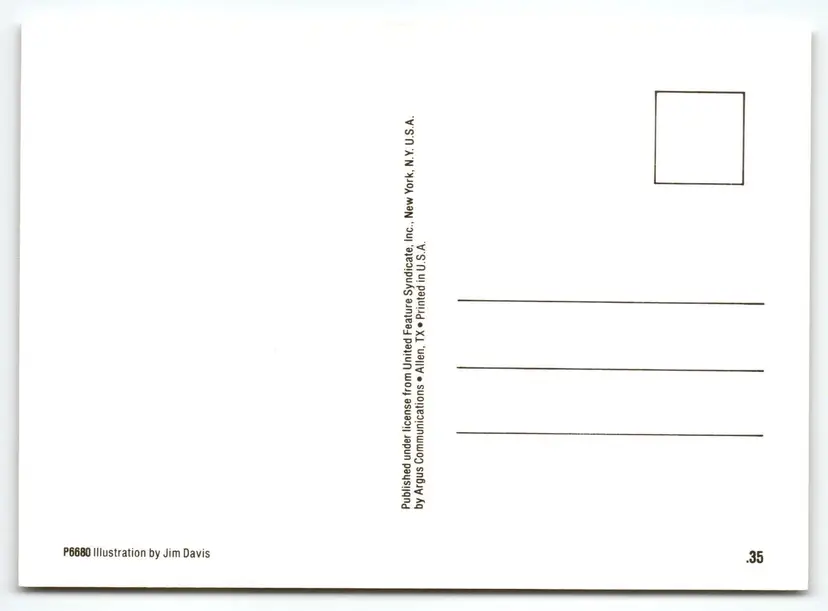Unit of Sale: Single Unit Artist: Jim Davis Number of Items in Set: 1 Featured Person: Garfield The Cat Character: Garfield Signed By: Jim Davis Occasion: Love & Romance Signed: Yes Size: Continental (6 x 4 in) Year Manufactured: 1978 Material: Paper Original/Licensed Reprint: Original Brand/Publisher: United Feature Syndicate Subject: Garfield Personalize: No Type: Printed (Lithograph) Era: Photochrome (1939-Now) Theme: Animals, Animation, Art, Comics, Greetings, Cat, Cats Features: Chrome Time Period Manufactured: 1980-1989 Country/Region of Manufacture: United States Postage Condition: Unposted