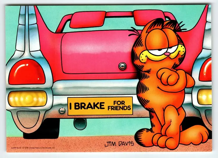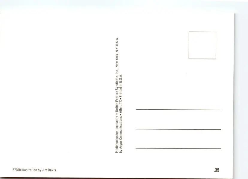 Unit of Sale: Single Unit Artist: Jim Davis Number of Items in Set: 1 Featured Person: Garfield The Cat Character: Garfield Signed By: Jim Davis Occasion: Friendship Signed: Yes Size: Continental (6 x 4 in) Year Manufactured: 1978 Material: Paper Original/Licensed Reprint: Original Brand/Publisher: United Feature Syndicate Subject: Garfield Personalize: No Type: Printed (Lithograph) Era: Photochrome (1939-Now) Theme: Animals, Animation, Art, Comics, Greetings, Cat, Cats, Tabby Cat, Tabby, Orange Cat, Persian Cat, Anthropomorphic Features: Chrome Time Period Manufactured: 1980-1989 Country/Region of Manufacture: United States Postage Condition: Unposted