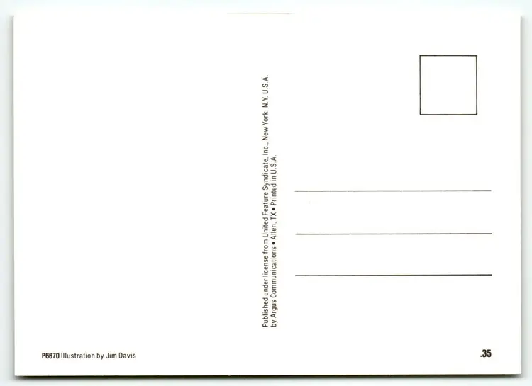 Unit of Sale: Single Unit Artist: Jim Davis Number of Items in Set: 1 Featured Person: Garfield The Cat Character: Garfield Signed By: Jim Davis Occasion: Any Signed: Yes Size: Continental (6 x 4 in) Year Manufactured: 1978 Material: Paper Original/Licensed Reprint: Original Brand/Publisher: United Feature Syndicate Subject: Garfield Personalize: No Type: Printed (Lithograph) Era: Photochrome (1939-Now) Theme: Animals, Animation, Art, Comics, Greetings, Cat, Cats Features: Chrome Time Period Manufactured: 1980-1989 Country/Region of Manufacture: United States Postage Condition: Unposted