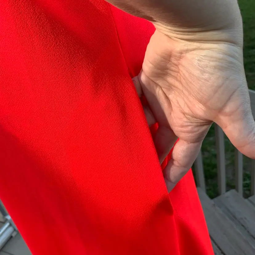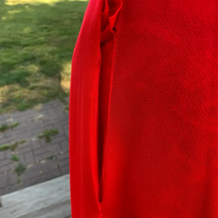 There are pockets on both sides. One pocket, is coming apart at the seam, which I pictured. It is an easy repair with a little TLC from a seamstress.