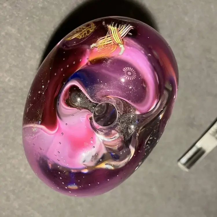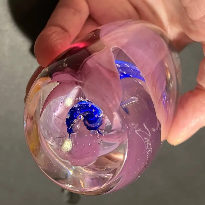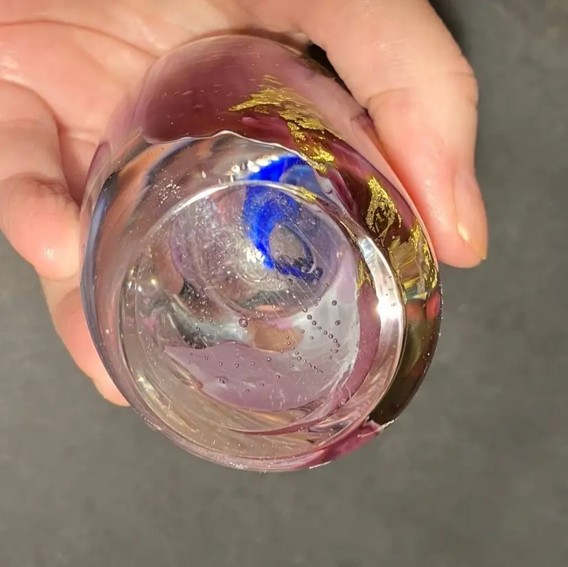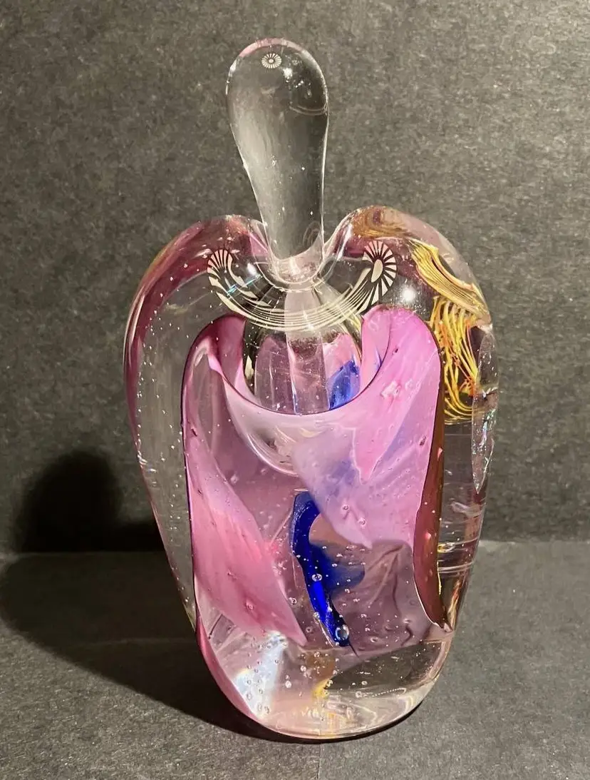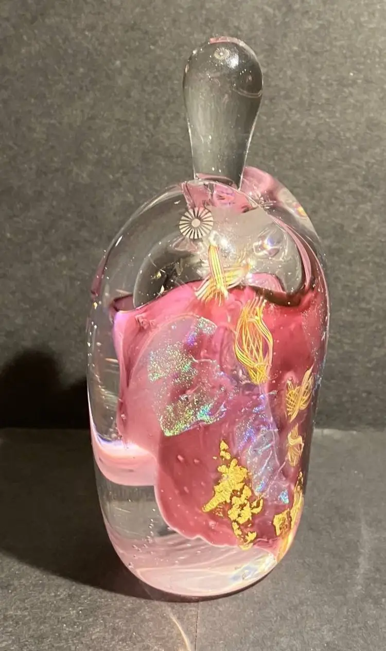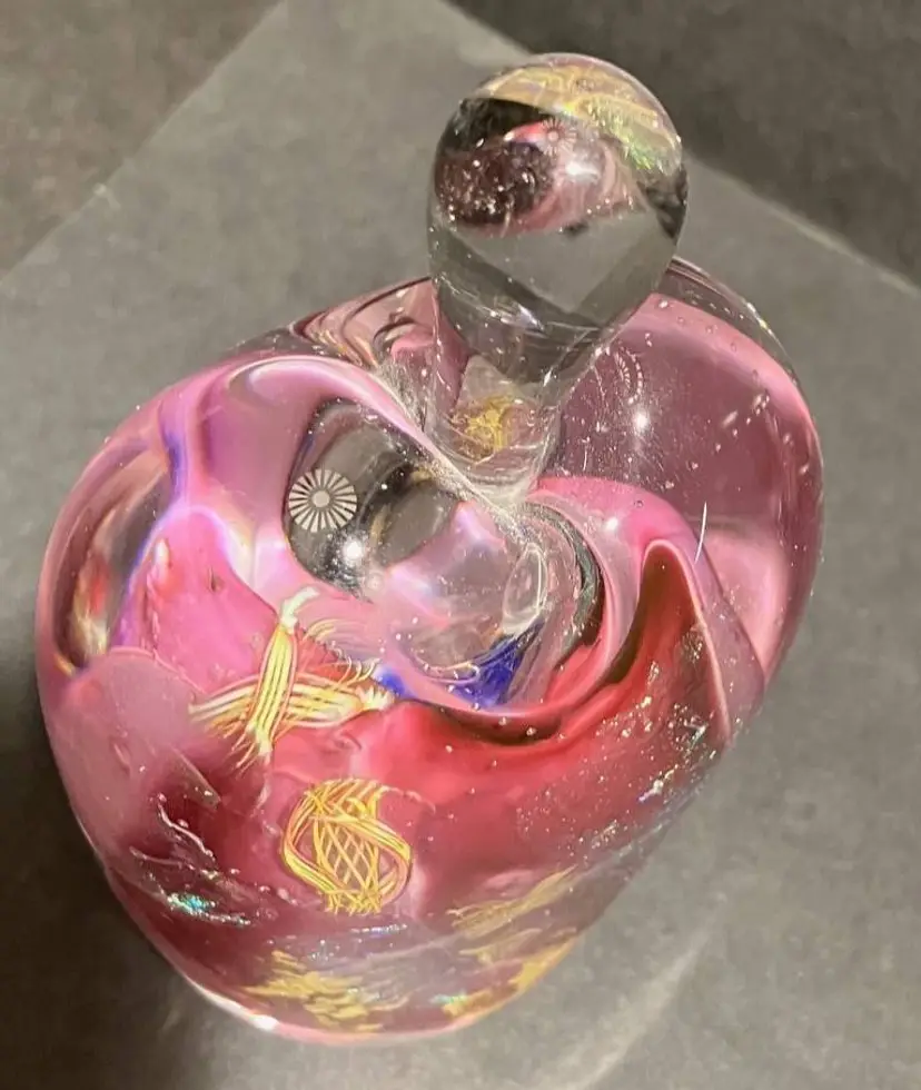 Gary Zack Hand Blown Glass Perfume Bottle Gold Pink Blue Art Glass Signed