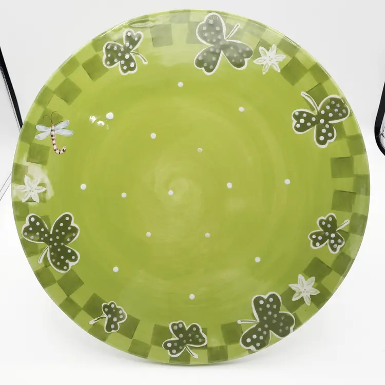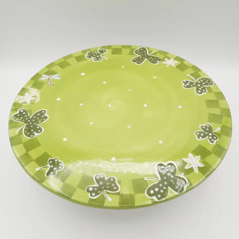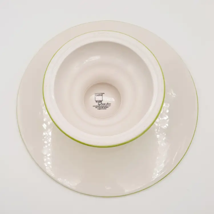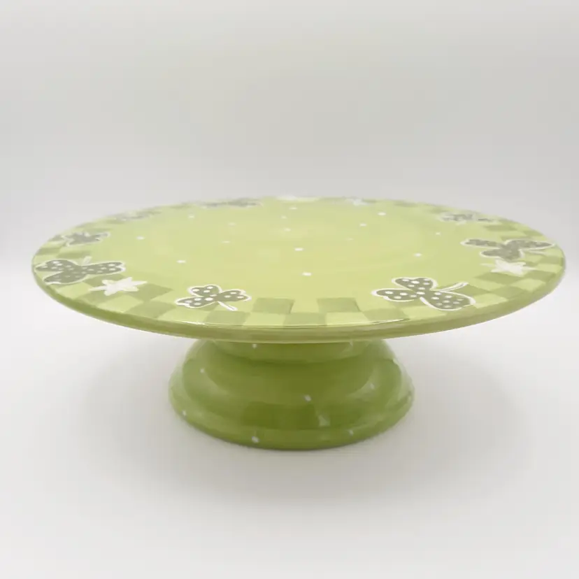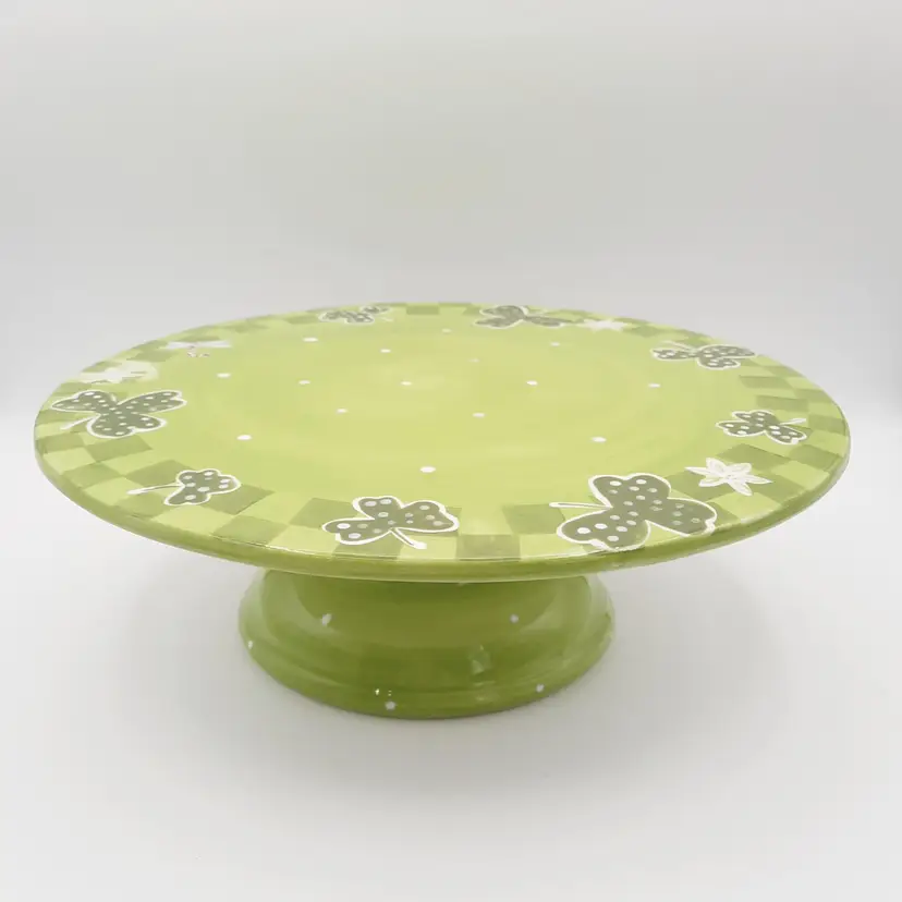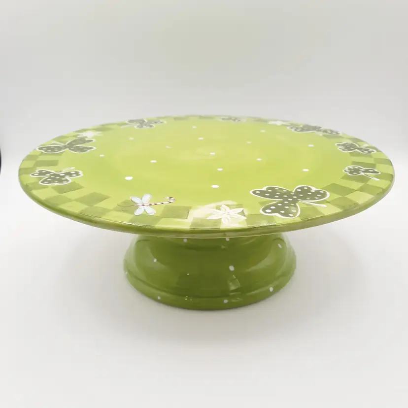 Fantastic, unique cake stand is 12"W x 4"H, great condition with one tiny paint chip