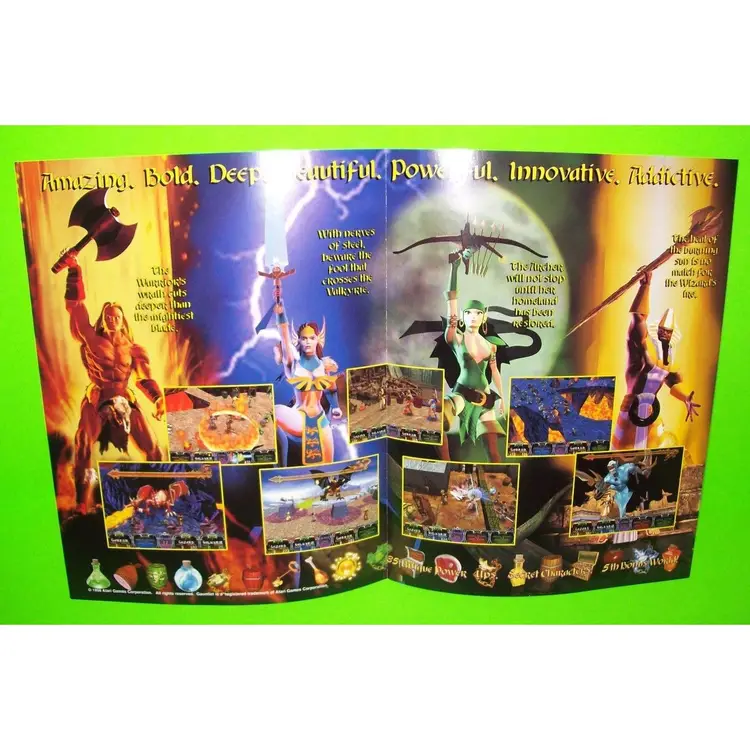 Flyers are paper promotional advertising art print sheets made for coin operated amusement arcade games. Also called a circular, brochure, pamphlet, or flier. Size is 8.5" X 11". Perfect for framing. Sheet protector included with each flyer sold. More pinball, jukebox, slot machine, and vintage arcade game items for sale in our store.