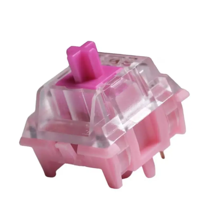 GAZZEW BOBAGUM SILENT LINEAR SWITCH Description These Bobagum switches redefine smoothness with an almost 'matte' feel, not quite the polished glide of ice-skating, nor the texture of unlubed switches, offering an unparalleled type feel. Moreover, expect a nearly silent sound profile when typing on these bubblegum-colored switches. Descriptors muted, subtle Technical data Type: Silent Linear