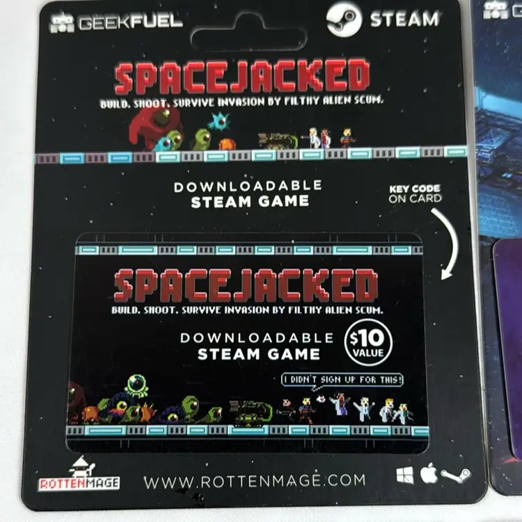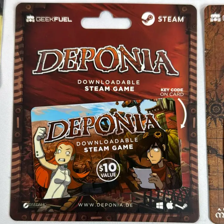Games Included: • Deponia ($10 value) • Steamroll ($13 value) • Spacejacked ($10 value) • Starward Rogue ($12 value) • The Dwarf Run ($9 value) • Caveman Craig (sticker only – not a game) • Unused Steam key on each card • Great for gifting, collecting, or expanding your Steam collection • Total game value of $50+