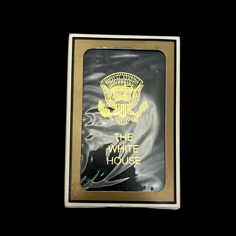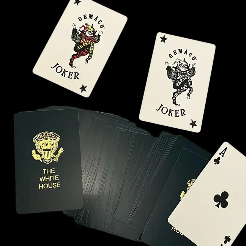 This particular deck features the seal of "The White House," indicating it was likely produced as a souvenir or given as a gift to commemorate specific events, administrations. The presence of Gemaco branding on the jokers and the box further solidifies its identity as being from a reputable card manufacturer.
