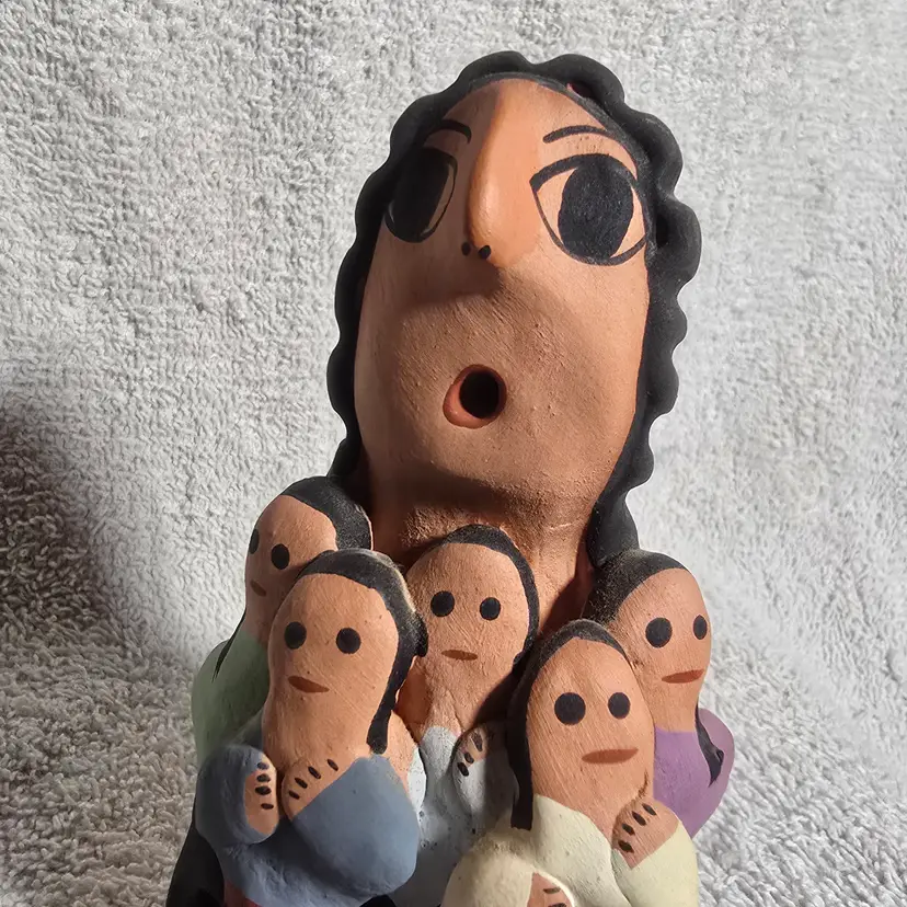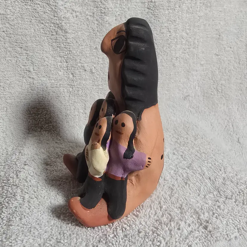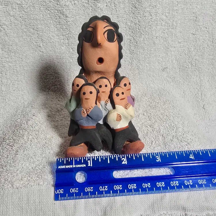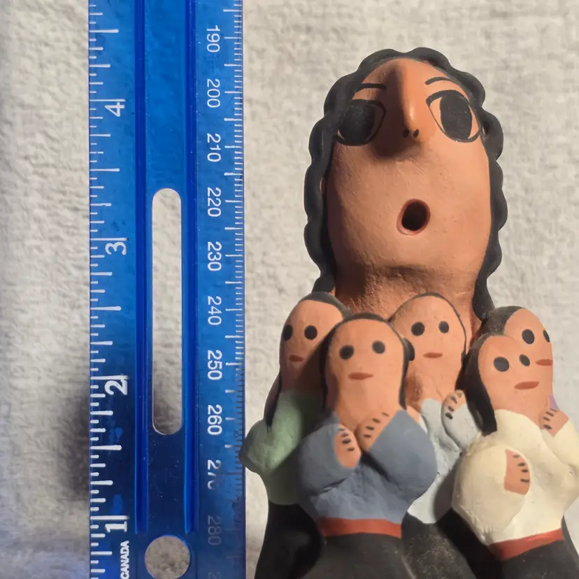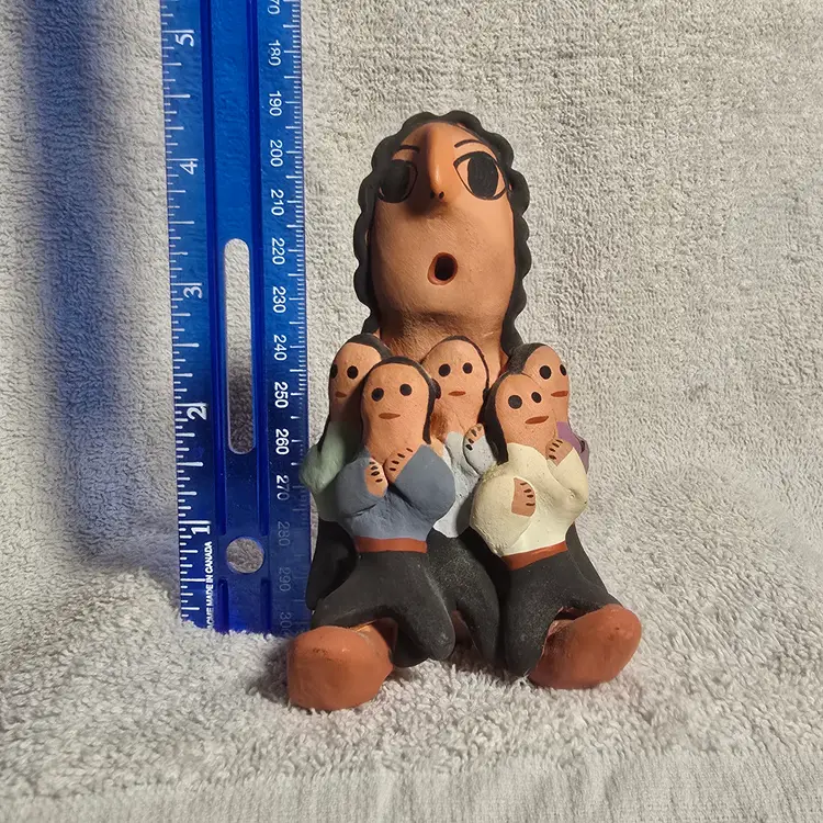 Vintage handmade Navajo storyteller figurine attributed to Geneve Bitonie (Bitioni) featuring a seated mother figure surrounded by five children.