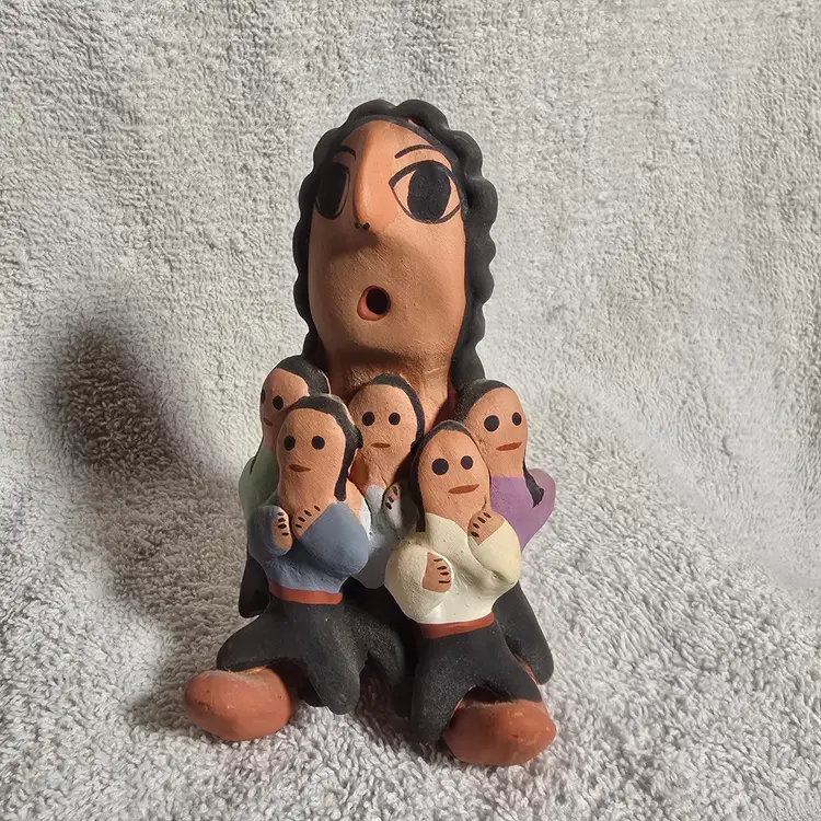 Traditional storyteller figures symbolize the passing down of stories, history, and culture through generations, making them meaningful decorative pieces and collectible folk art.