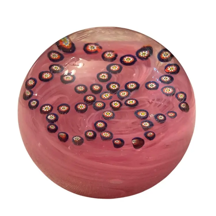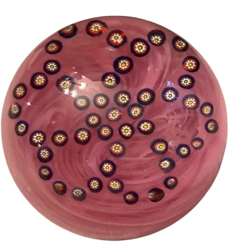 Stamped on bottom- pink with millefiori 2” x 3” no scratches, chips or bruises