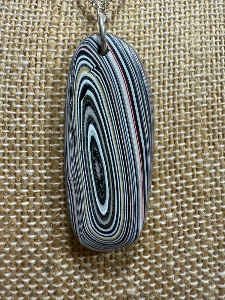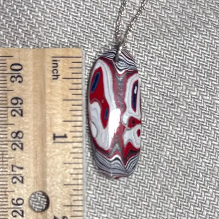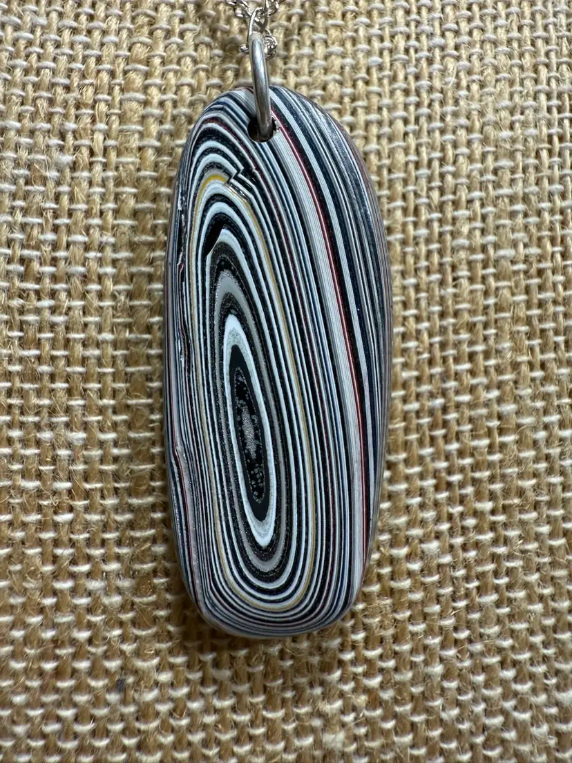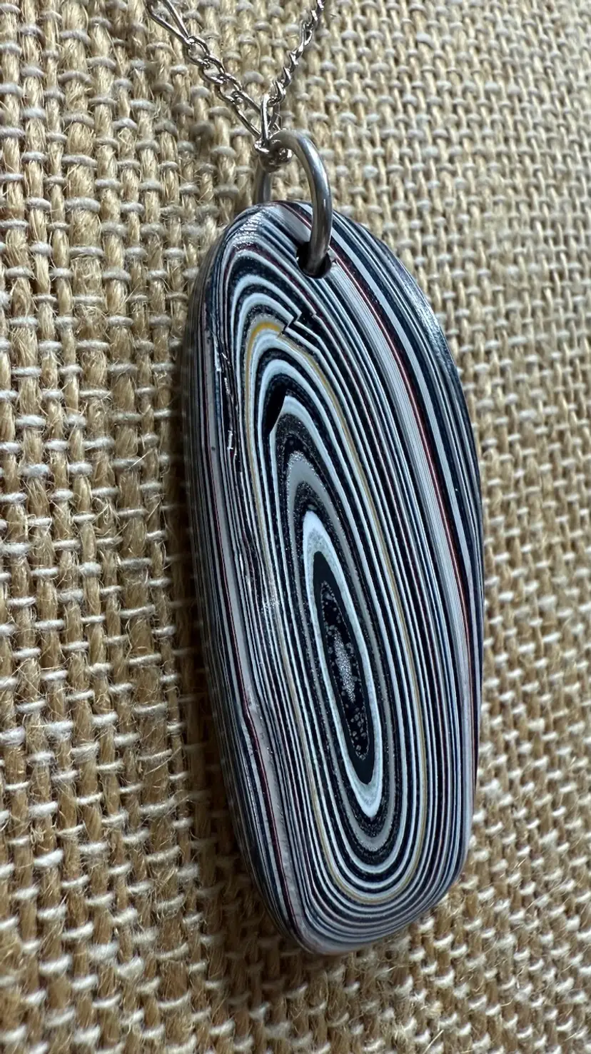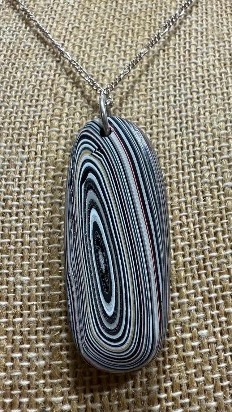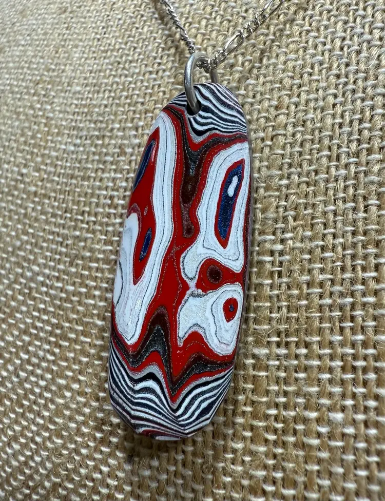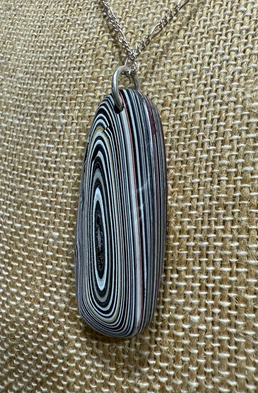 Hand polished and drilled into a beautiful stone pendant for use as-is on your own chain or cord. As great as a center piece to your necklace creations. Polished on both sides and gives two different looks! Approx 1 3/4” long width approx 1/2”freeform shape. Jump ring is Sterling Silver.