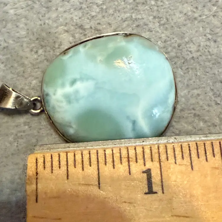 Genuine Larimar Cabochon Pendant .925 Sterling Silver 1.25”