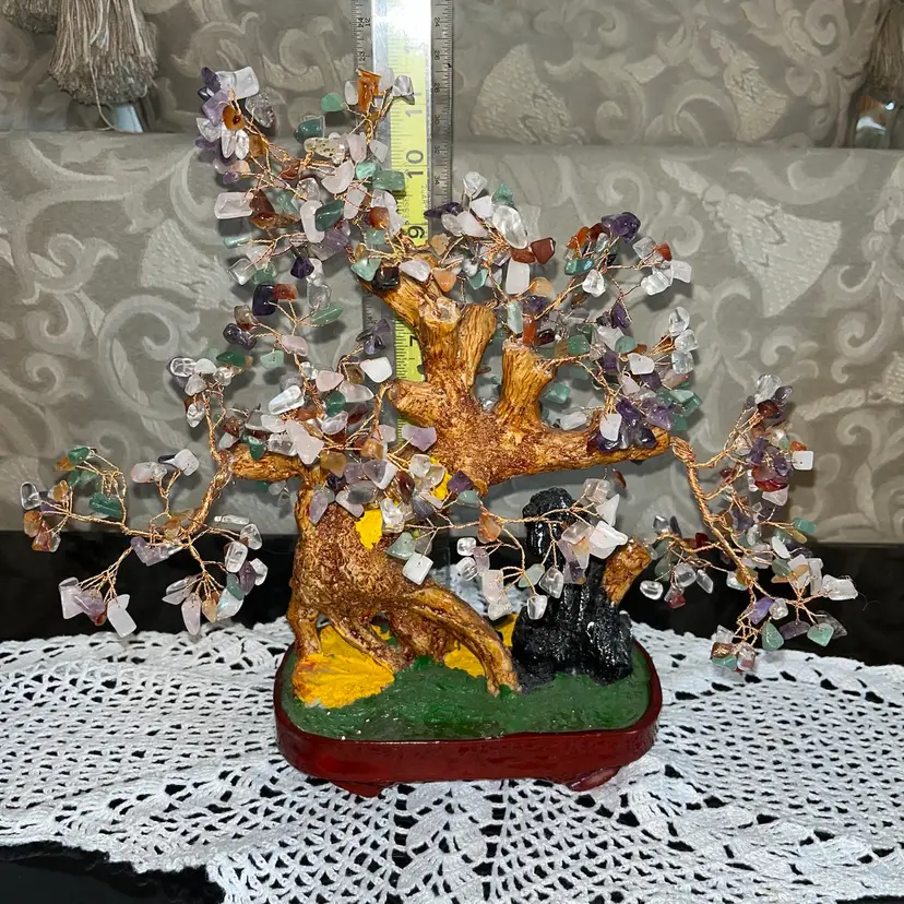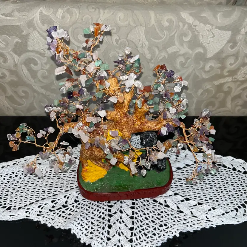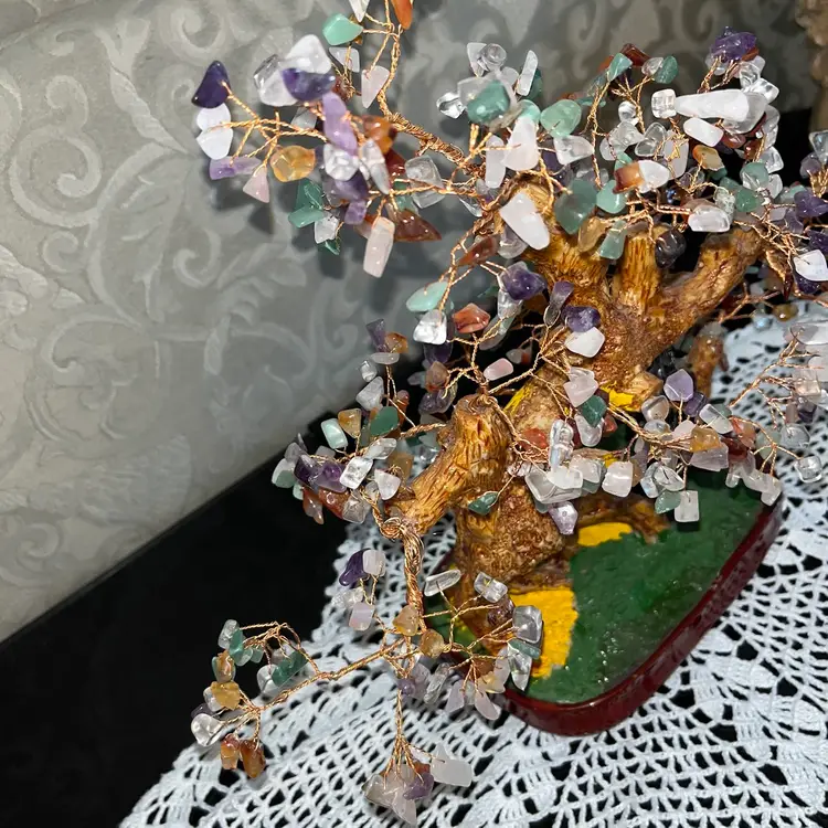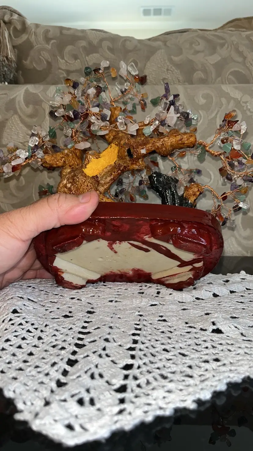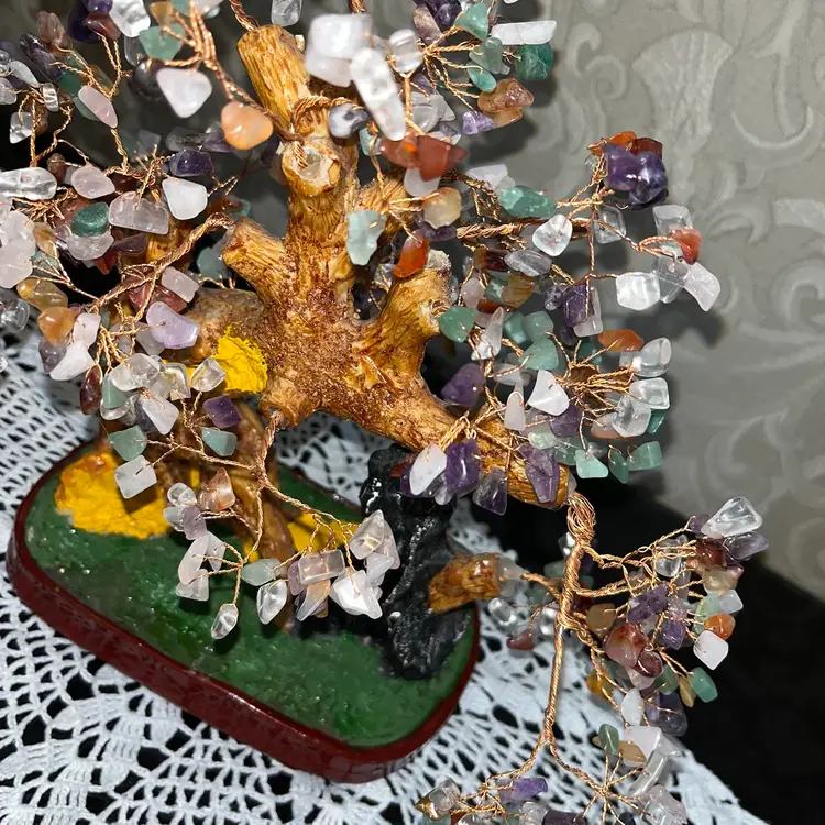 Genuine Multi Gemstone Bonsai Tree & extra in brown Ceramic Pot (11/12 in) great condition has a little details nothing major please check the pictures and video carefully thanks