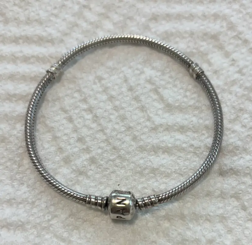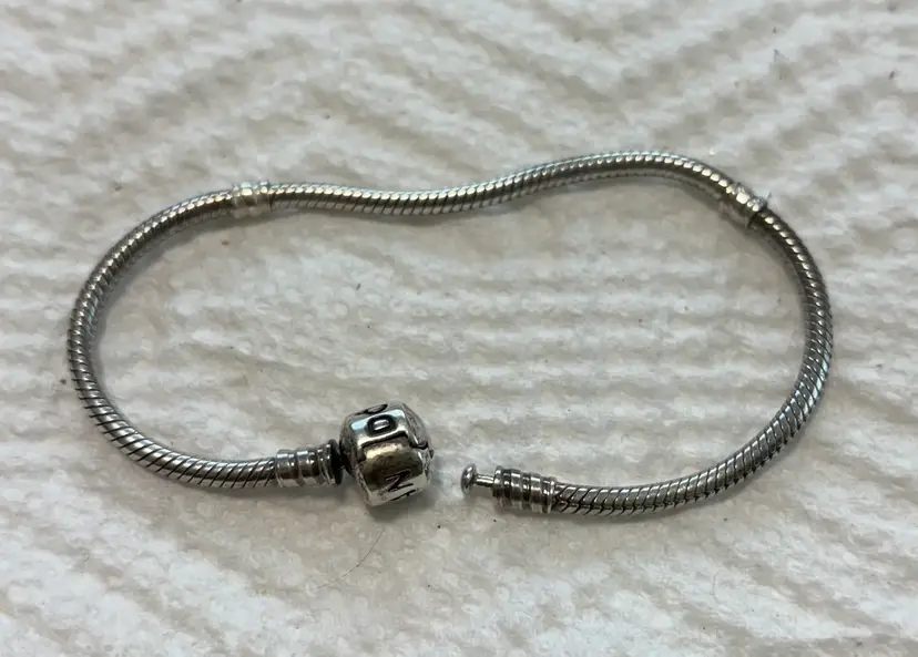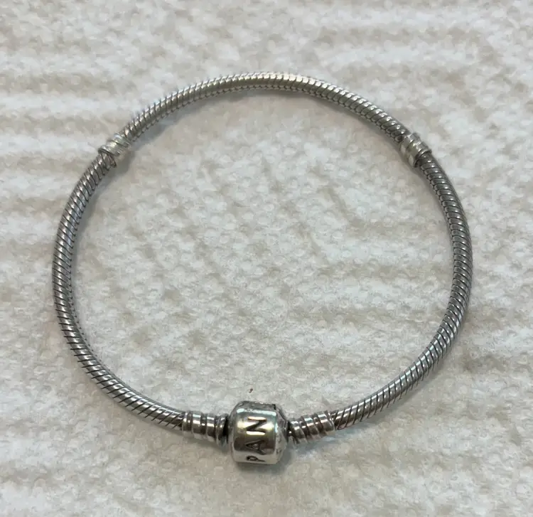 Sterling silver Pandora snake chain charm bracelet. Preowned, very good condition.