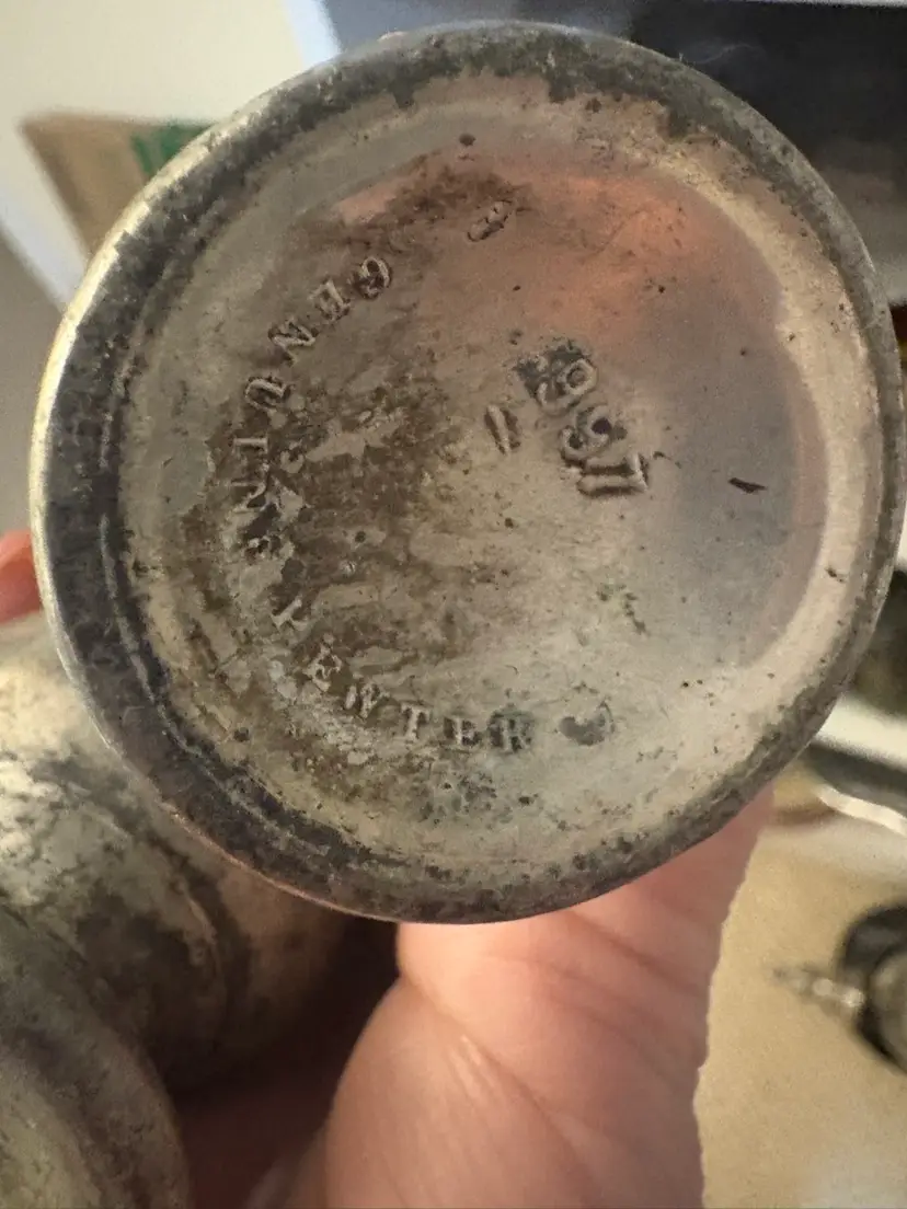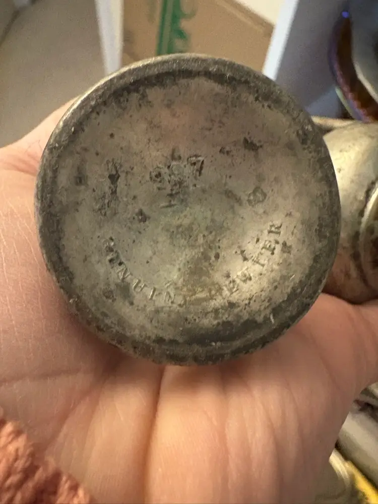 Genuine Pewter Salt And Pepper Set. Tarnished