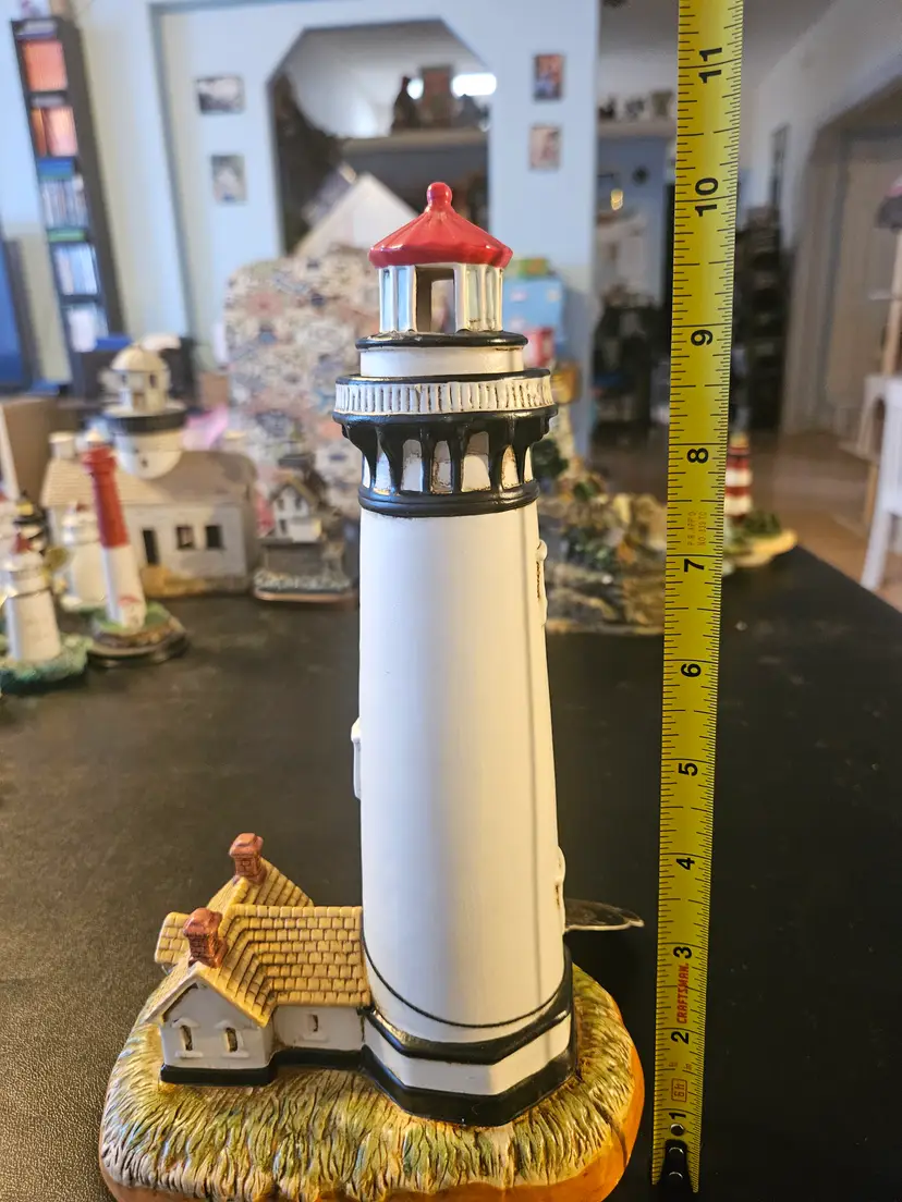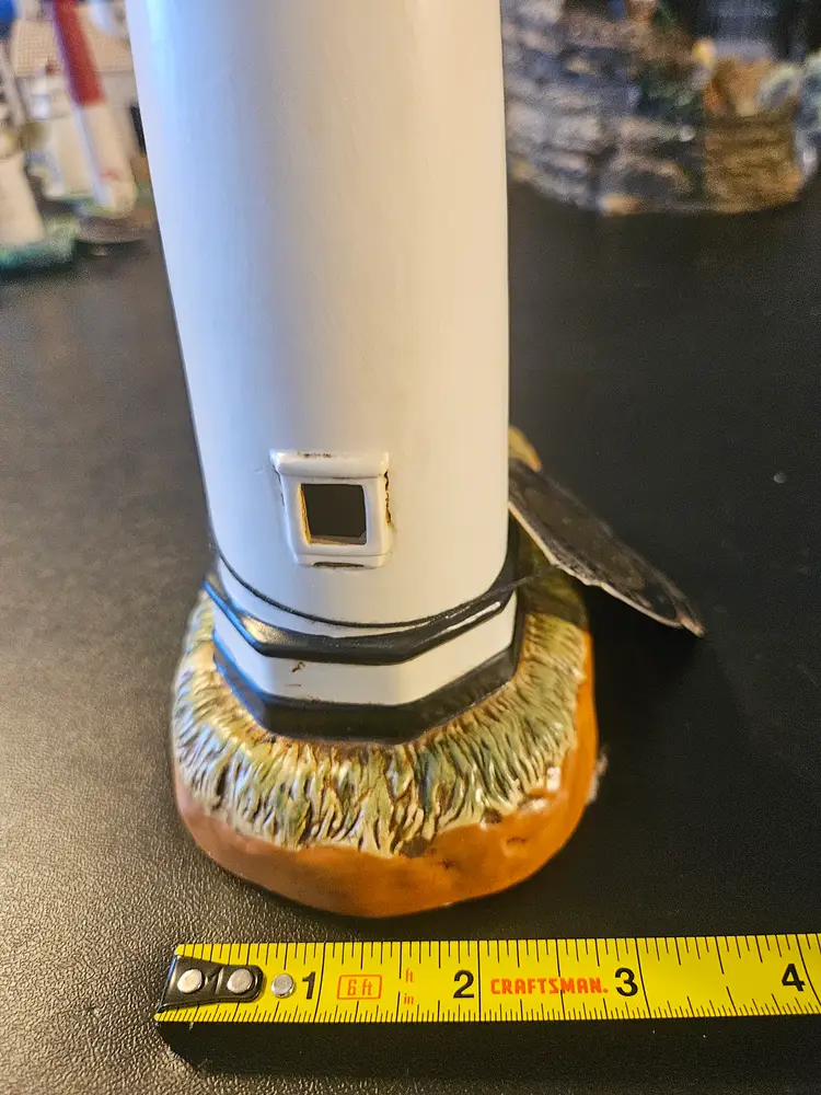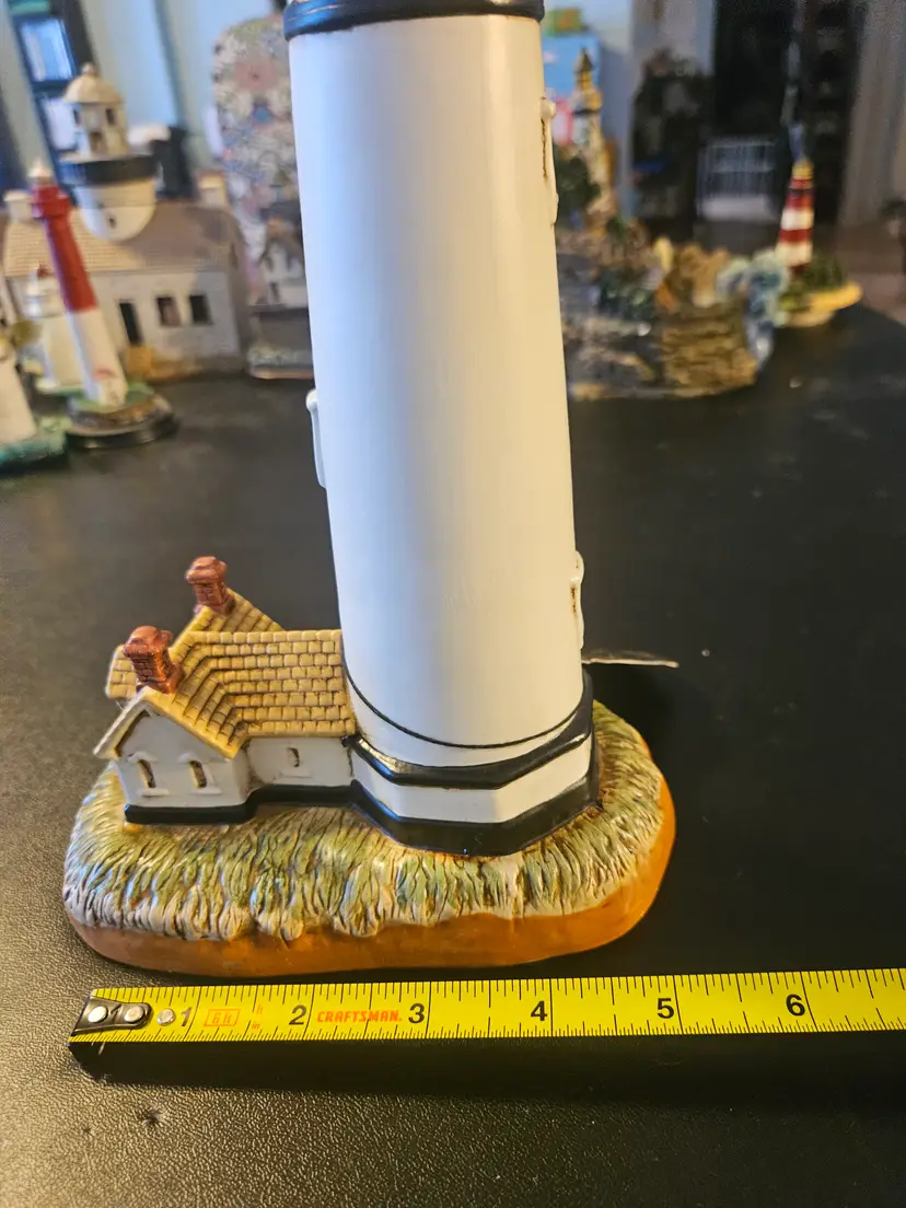 The figurine depicts the Pigeon Point Lighthouse, which is located in California and was built in 1872.