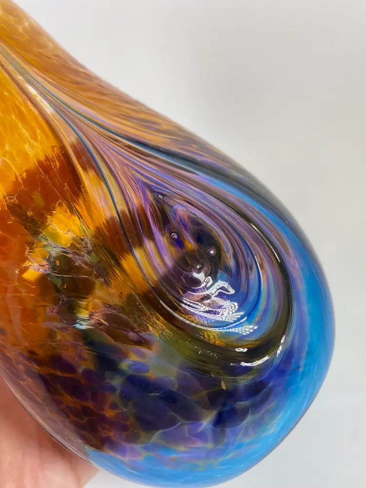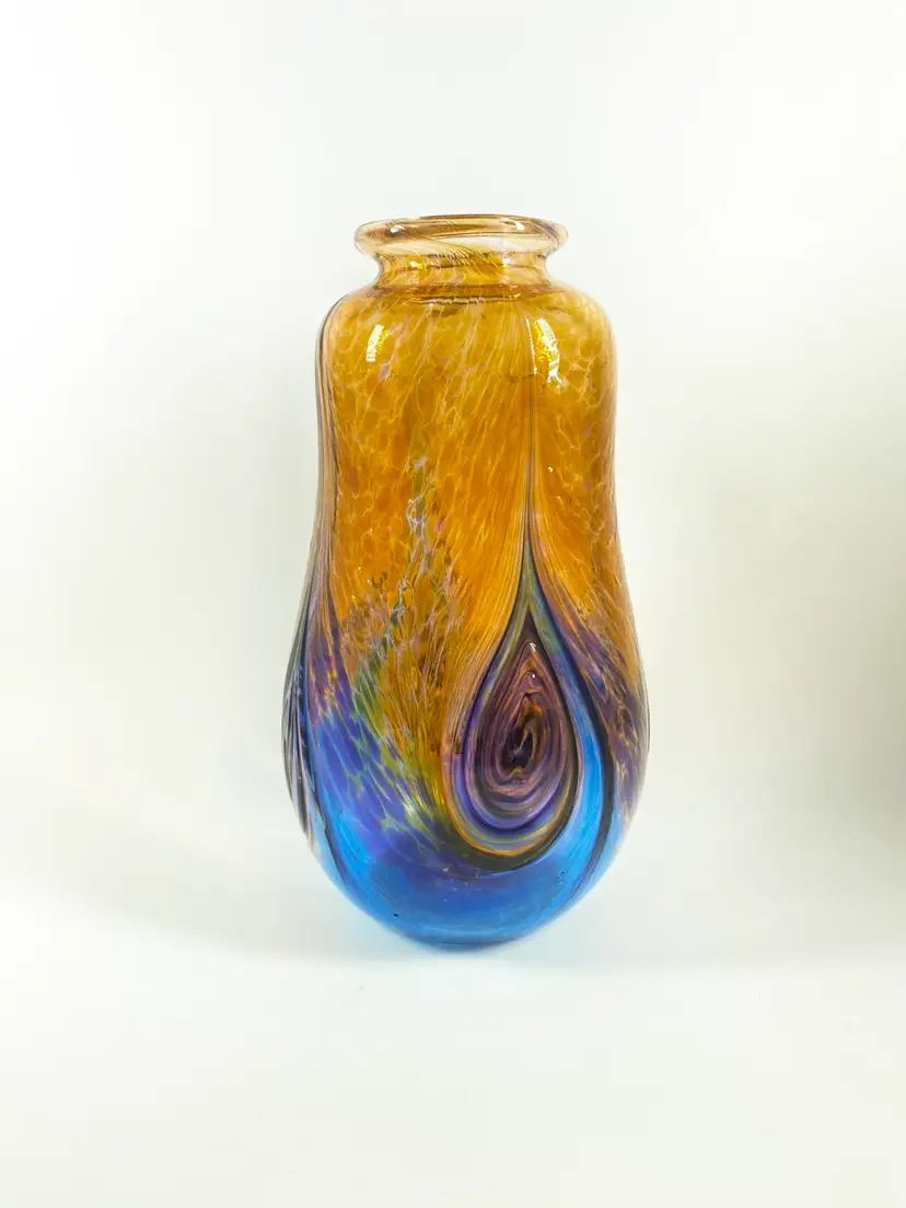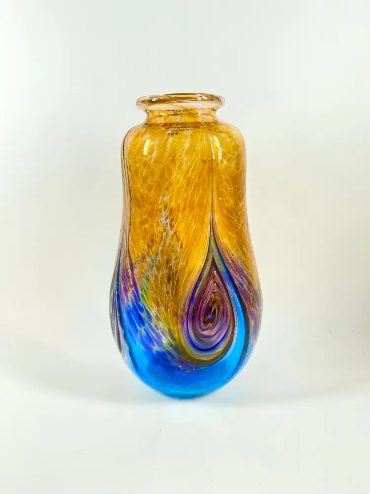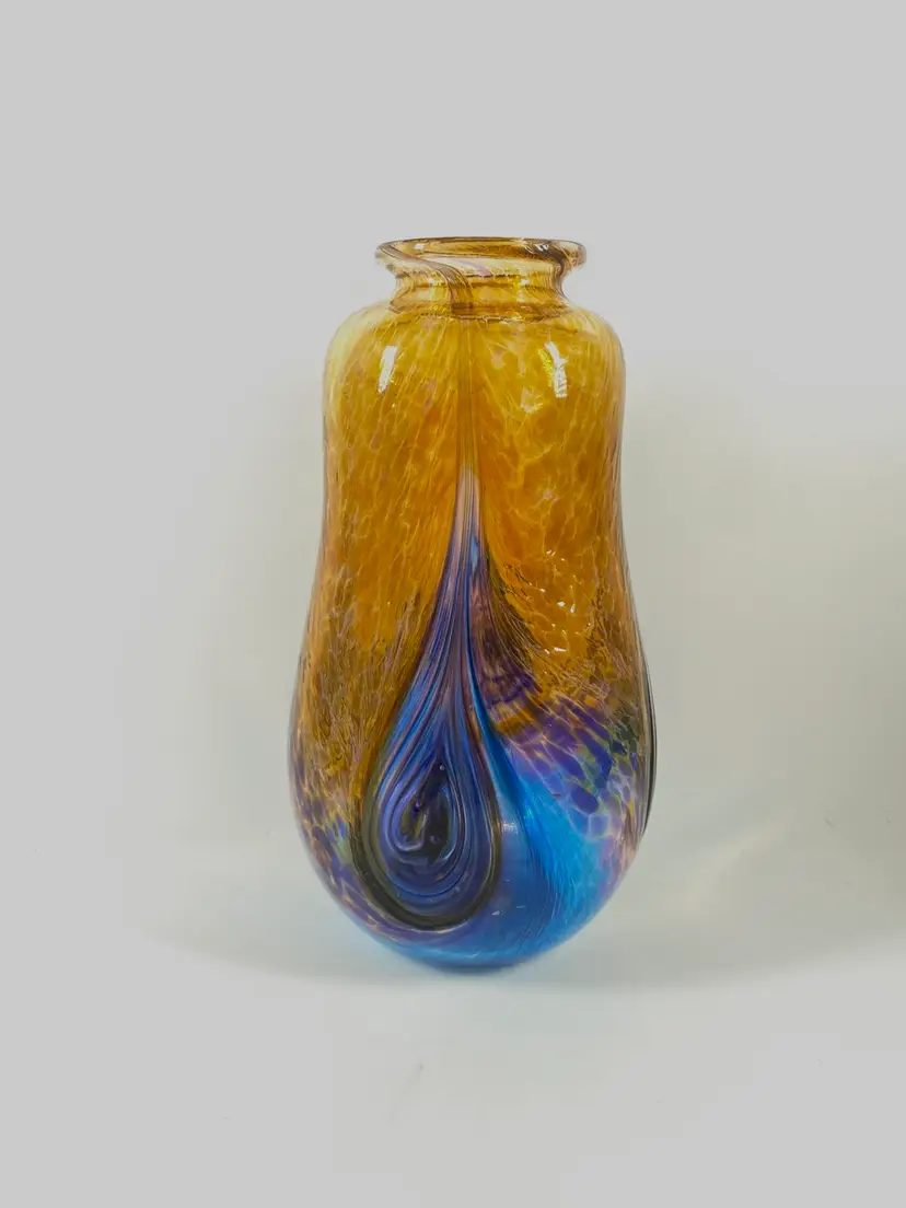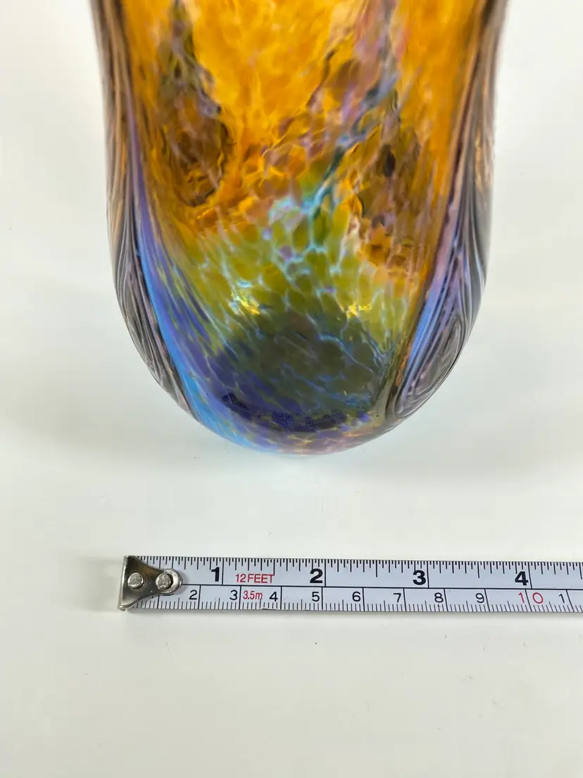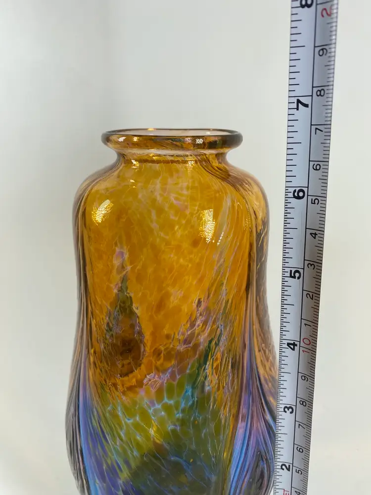 No chips or crack. Signed on the bottom. It measures approx 6-5/8” height x 2” in diameter at the opening, 3-3/4” in diameter width.