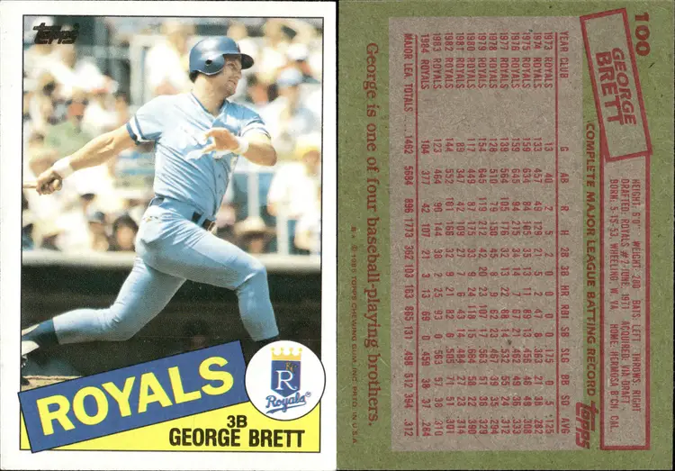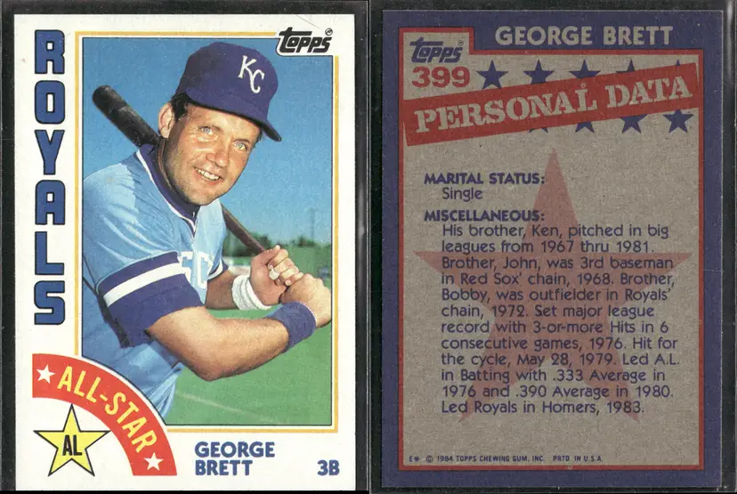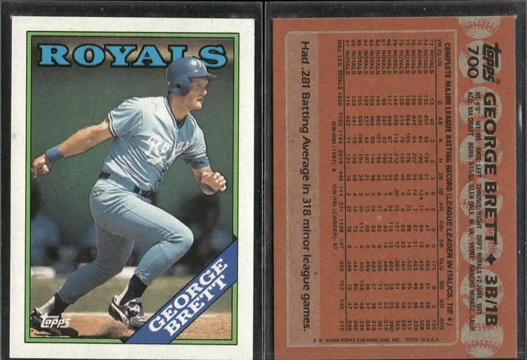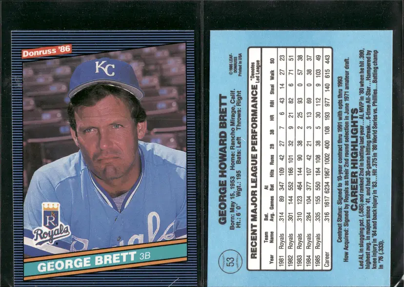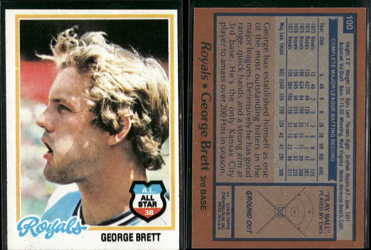 George Brett Vintage Lot of 19 Baseball Cards Kansas City Royals HOF This lot contains 19 baseball cards of Hall of Famer George Brett, this lot spans from 1976 to 1991 All cards are in good shape and will deliver in great shipping. Any questions or more pictures let me know and thanks for looking.