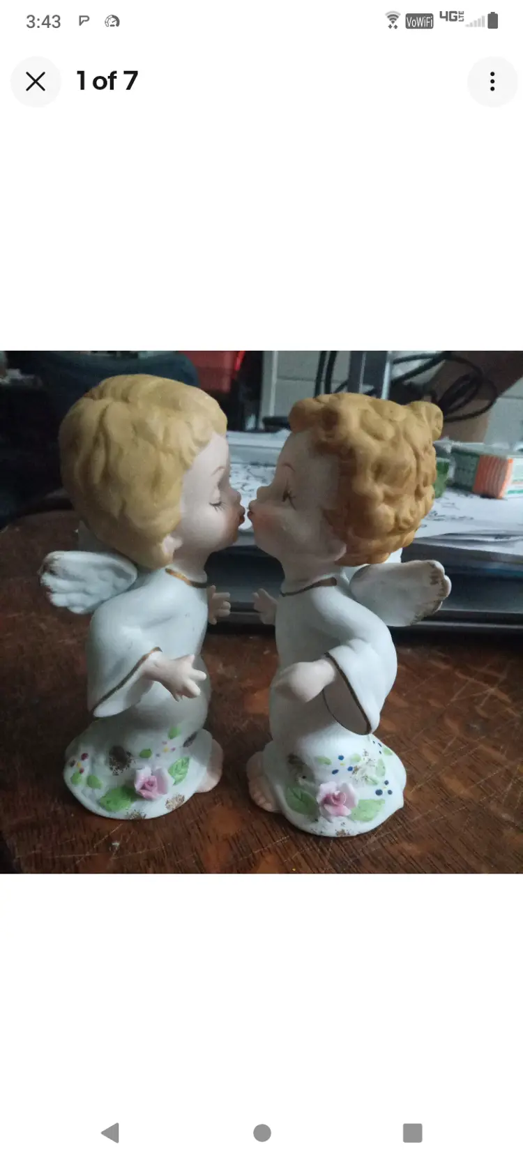 Ideal for collectors and enthusiasts of decorative art, these figurines bring a touch of elegance and romance to any setting. The gentle kissing embrace between the angelic figures makes them a particularly captivating addition to your curio cabinets, shelves, or mantelpieces. Add a piece of history to your collection today.