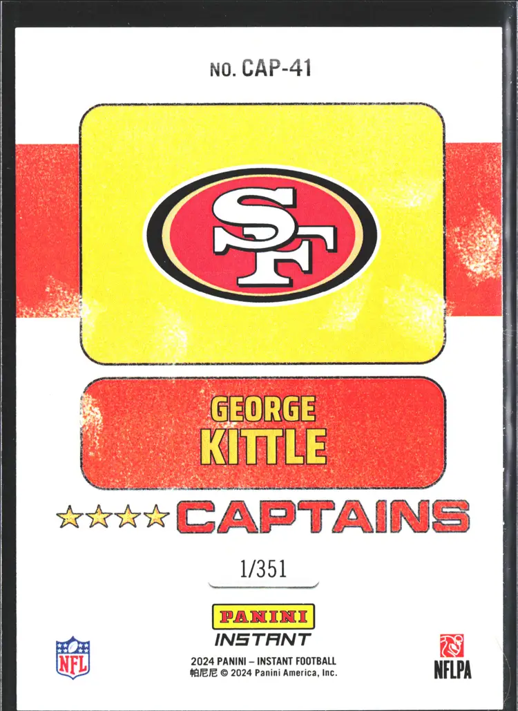 1st time buyer? Get $5 Off with code DISTRICT5 at checkout! Card as shown. All cards $20 and under ship PWE via lettertrackpro [https://www.letter-track.com/registerap.asp?AFID=8757] Sport: Football Set: 2024 Panini Instant NFL Manufacturer: Panini Features: Limited Edition, Serial Numbered Season: 2024 Parallel/Variety: Limited Player/Athlete: George Kittle Type: Sports Trading Card Autographed: No Year Manufactured: 2024 Vintage: No Graded: No Team: San Francisco 49ers League: National Football League (NFL) Card Condition: Near Mint or Better Material: Card Stock Original/Licensed Reprint: Original Country/Region of Manufacture: United States