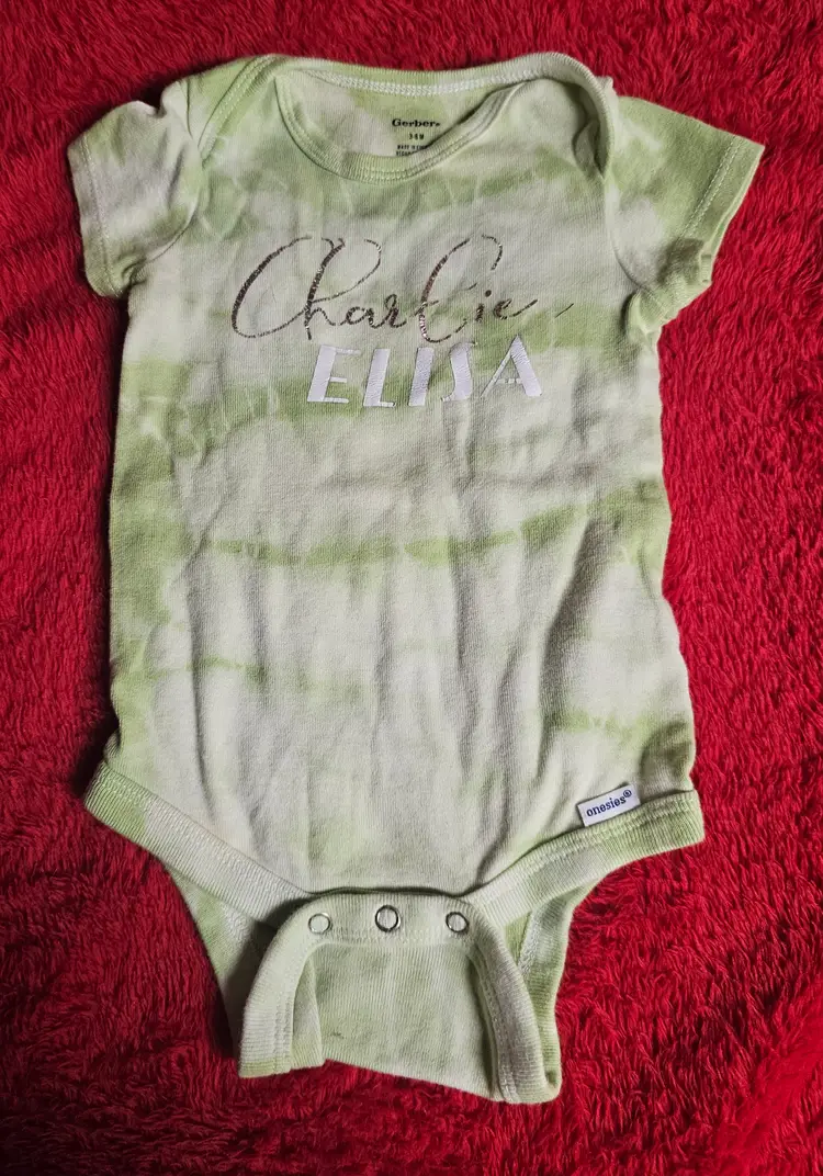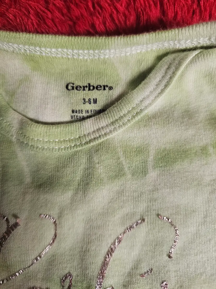 The Gerber 3-6 Month Onesie in short sleeve green tie-dye is a stylish and comfortable one-piece outfit for babies. Made from 100% cotton, this bodysuit features a snap closure for easy dressing. The tie-dye pattern adds a fun and vibrant touch, perfect for casual occasions during the summer, fall, or spring seasons. Easy to care for with machine washable instructions, this Gerber onesie is a great addition to any baby girl's wardrobe.