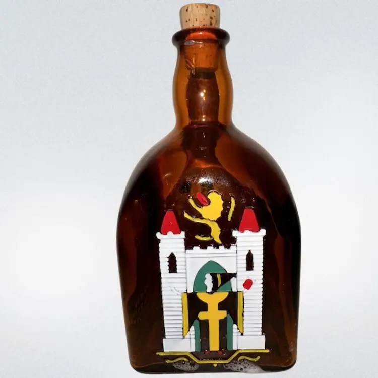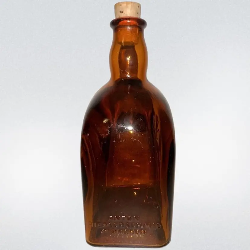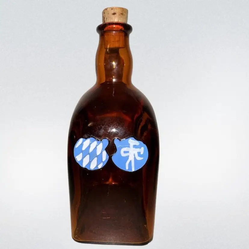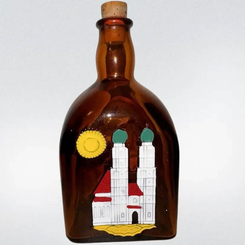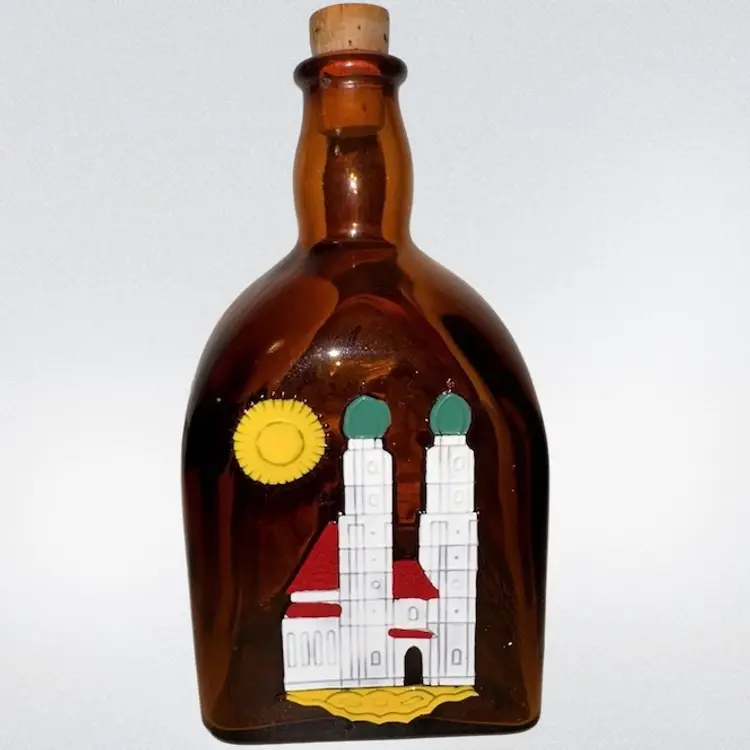 GERMAN ANTON RIEMERSCHMID Embossed Enameled Empty Goldvasser Collectible Bottle Only Includes cork Circa 1960 Measurements: Size Is 2.7”X 3.7” X8” tall 0.7 liter bottle Great condition and a bright, cheerful add to your bar decor/Collector bottles