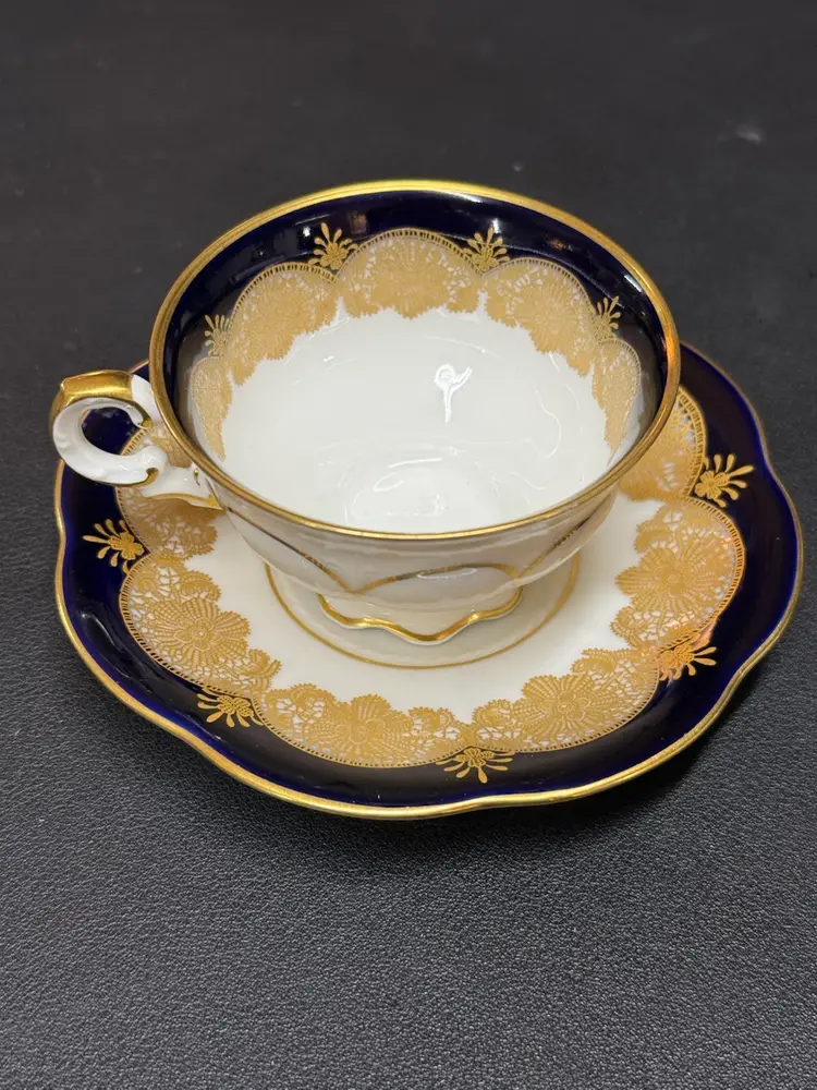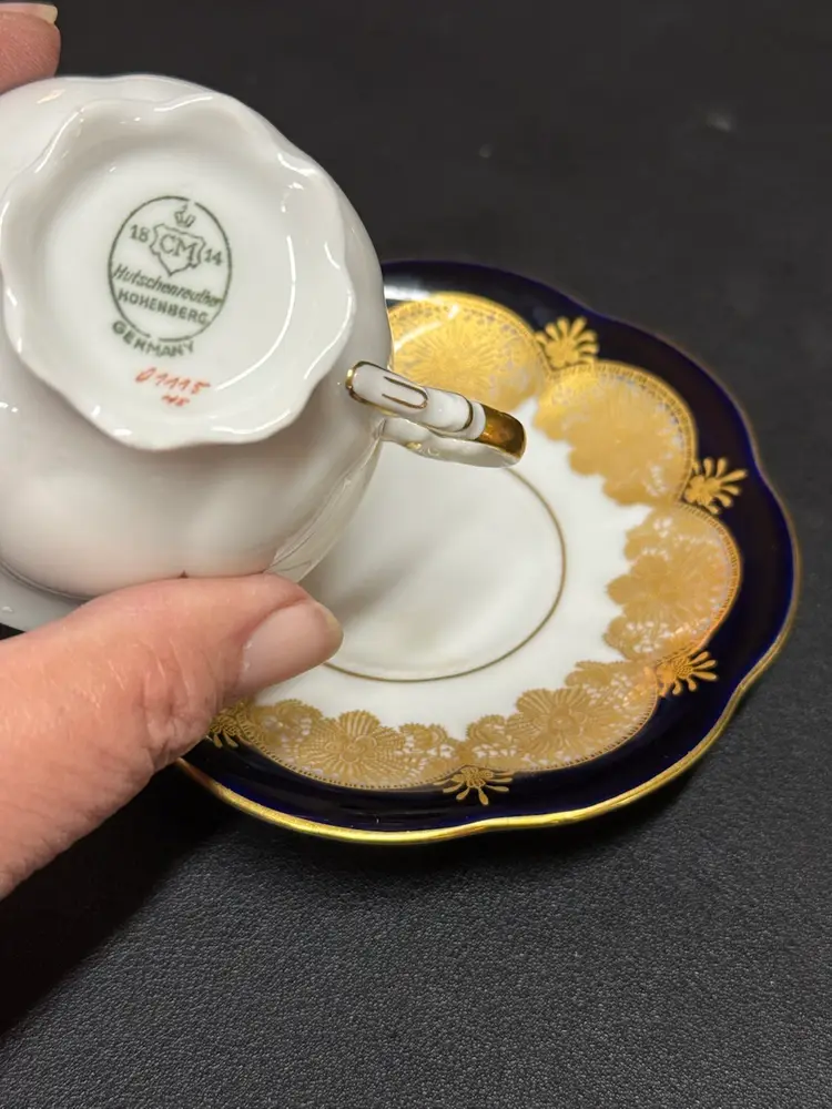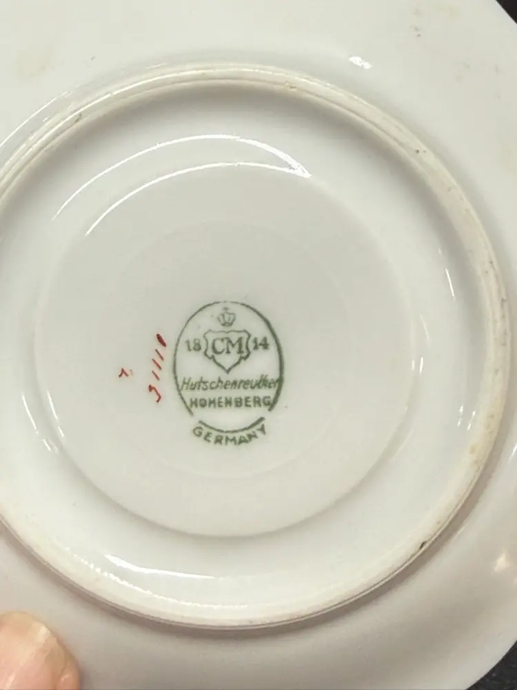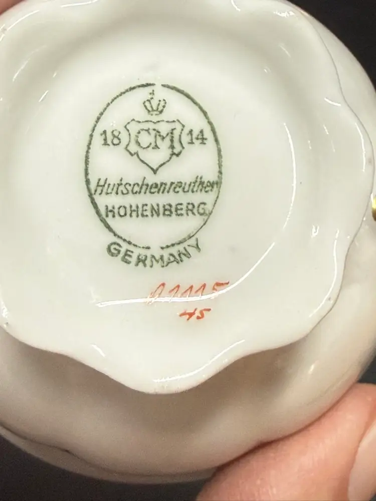 Marked Germany and with the maker. Black and gold painted design. Excellent condition