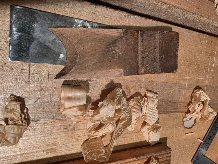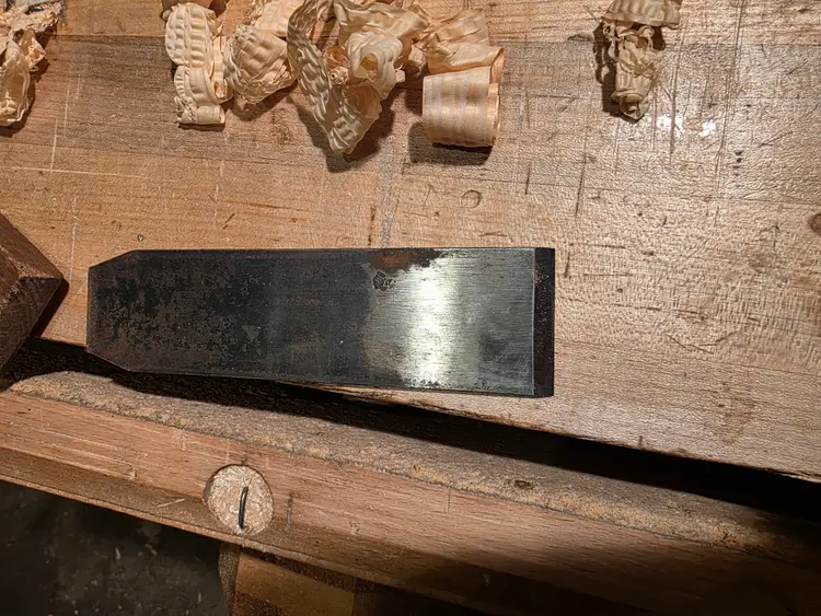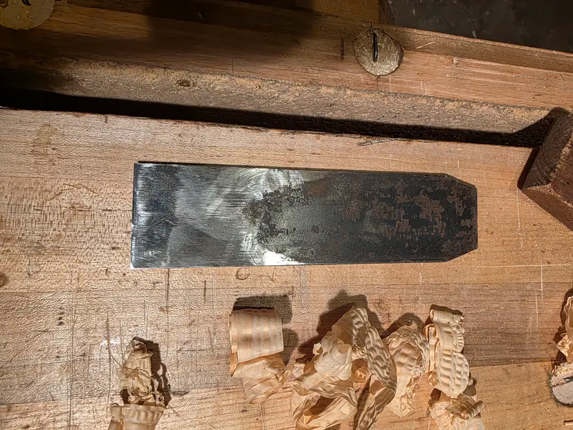 I have sharpened the plane and with very light taps able to adjust to take a moderately thin shaving. The shavings in photos were made with this plane.