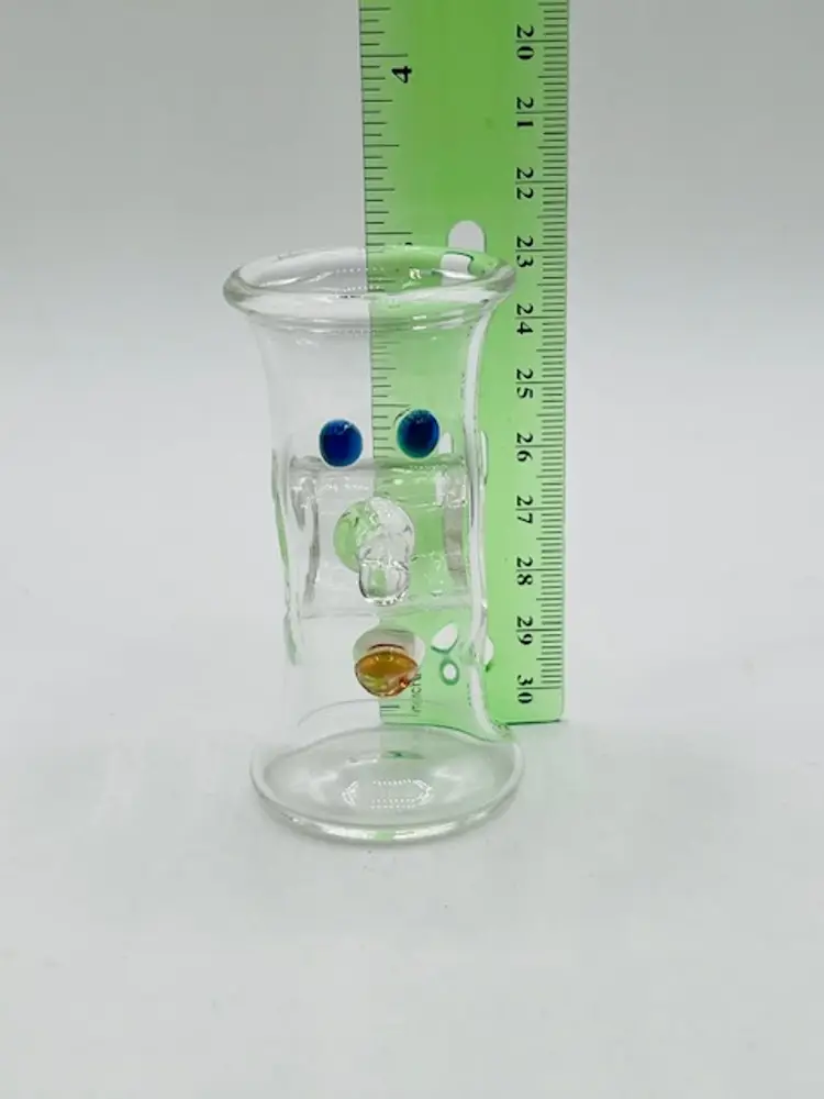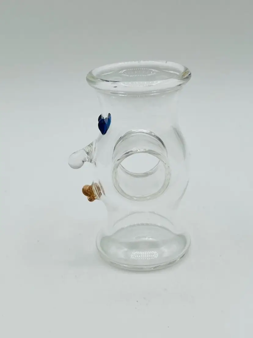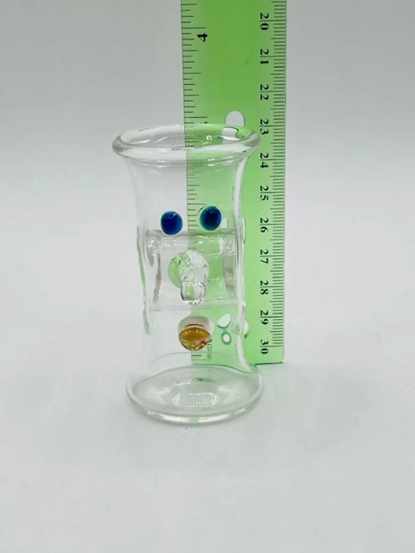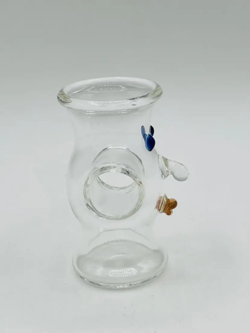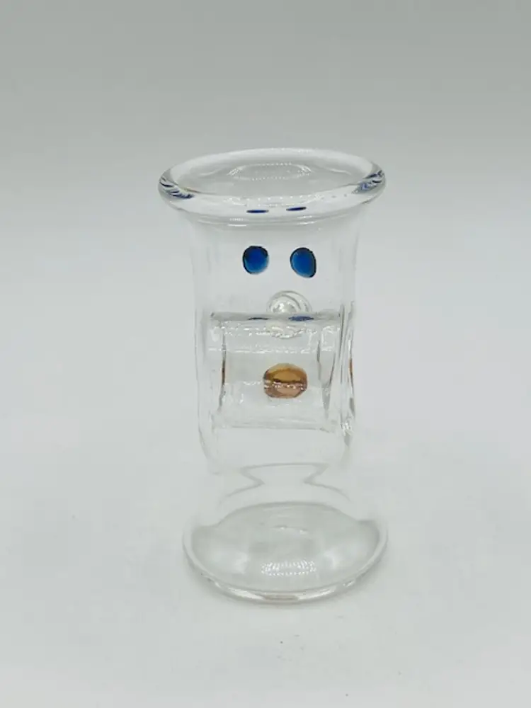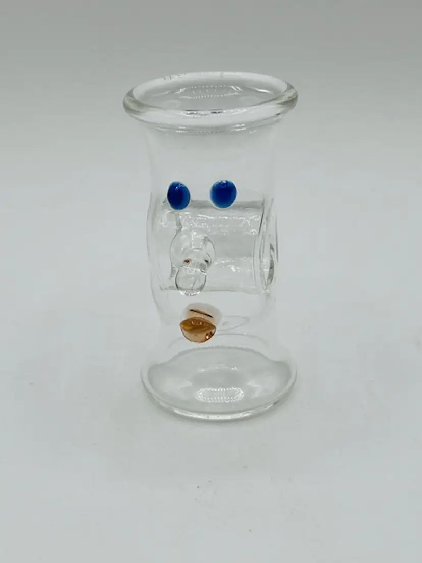 This Karl Ittig Figural Shot Glass is a unique and handblown collectible shot glass crafted in Germany. Featuring a 3D face this shot glass is not only functional but also serves as a decorative piece. The artist's touch and attention to detail make this shot glass a standout addition to any barware collection. It is in excellent condition with no chips or cracks.