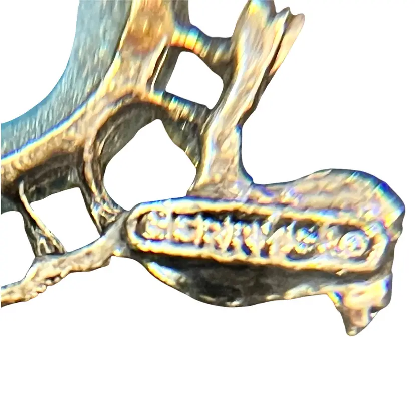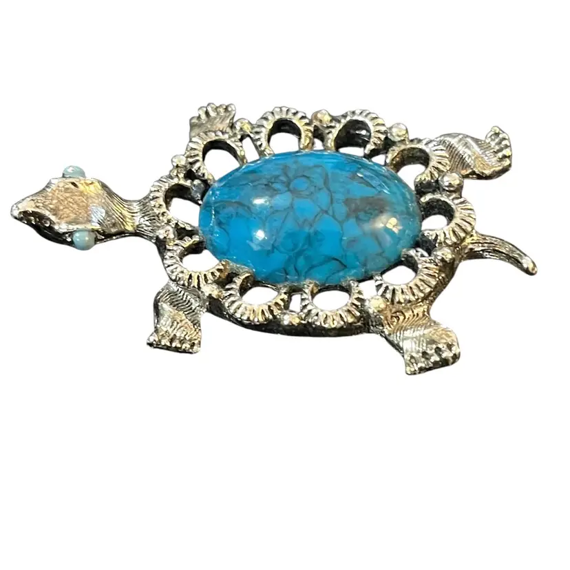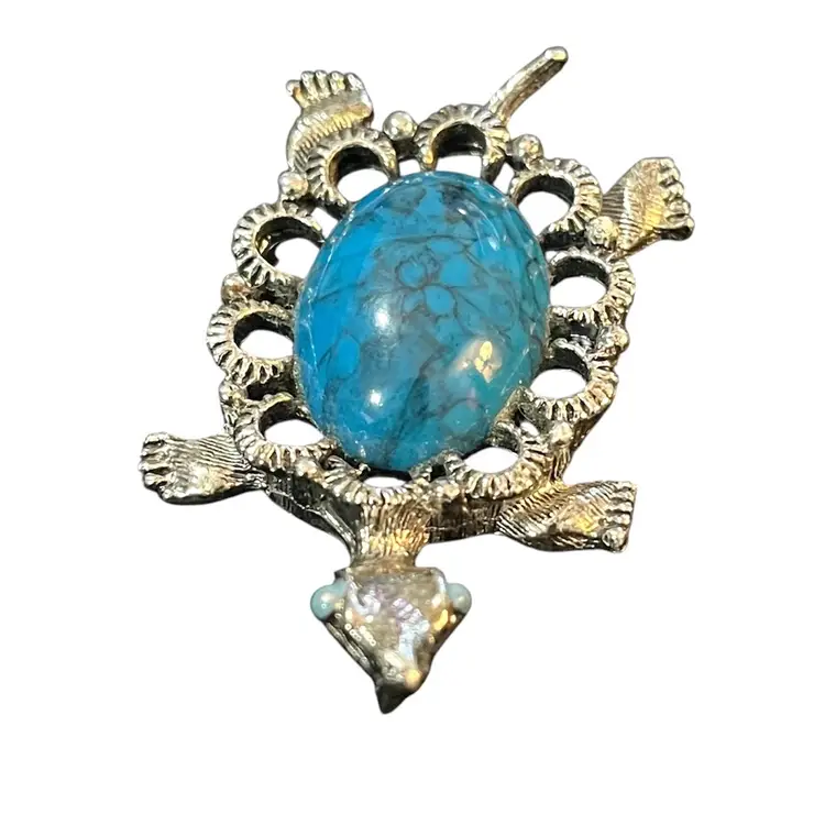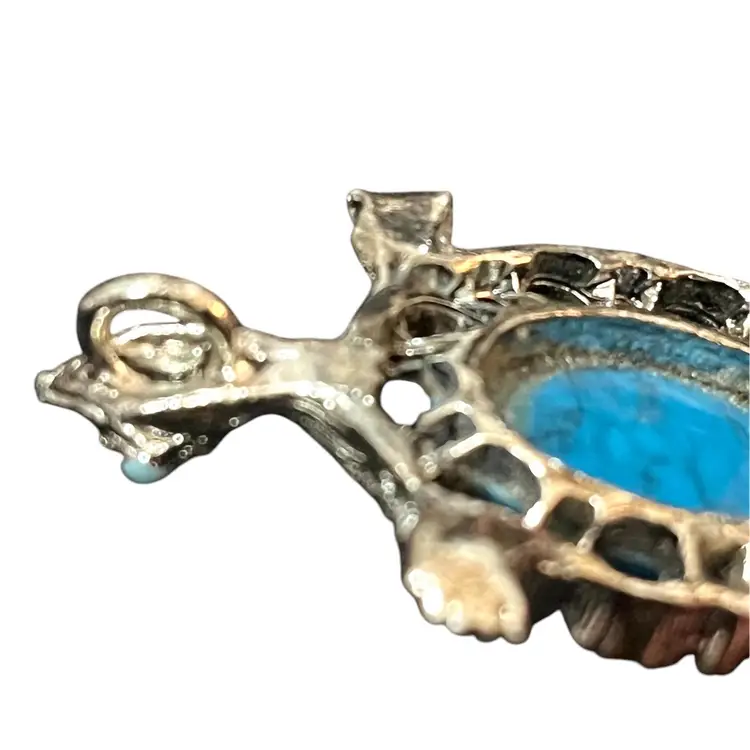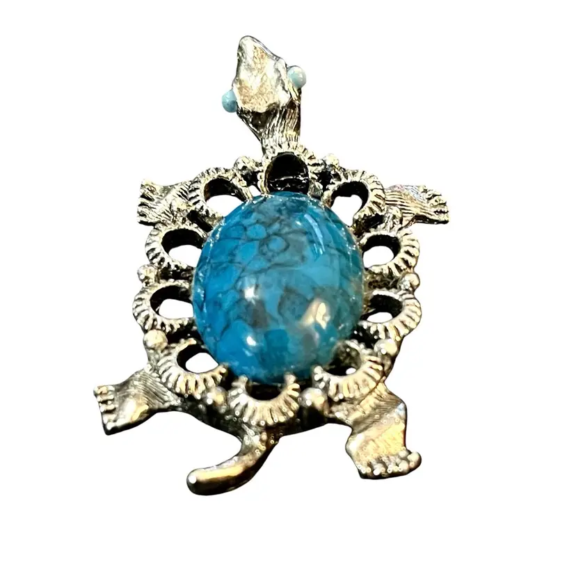Gerry's Signed Vintage Turtle Costume Jewelry Necklace Pendant. Pre-Owned. Has Glue Residue on the Underside & The Silver Coating has Worn off a Couple of the Little Ball Detailing On the Turtles Back. See Photos