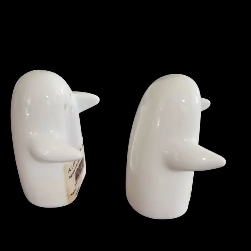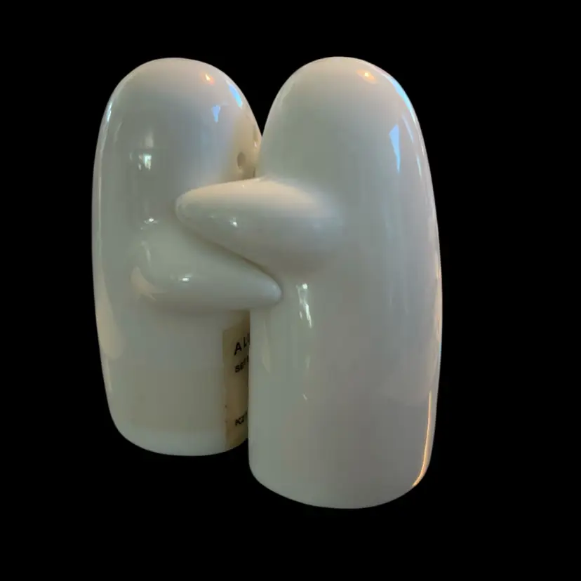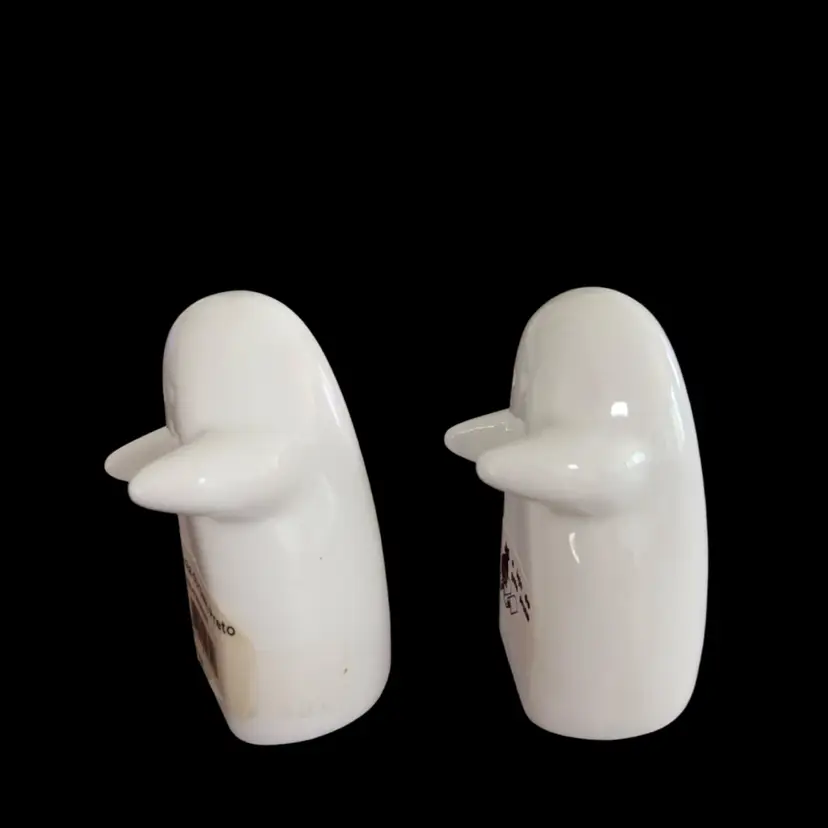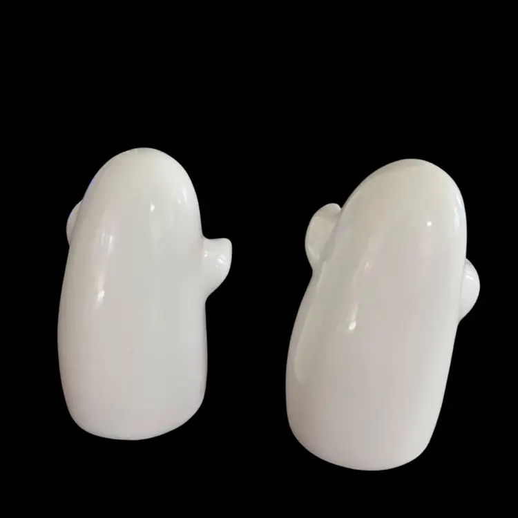 The shakers are made of white ceramic and feature hugging ghosts and measure approximately 3 inches tall