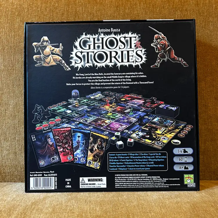 Ghost Stories is a cooperative game in which the players protect the village from incarnations of the lord of hell – Wu-Feng – and his legions of ghosts before they haunt a town and recover the ashes that will allow him to return to life. Each Player represents a Taoist monk working together with the others to fight off waves of ghosts.