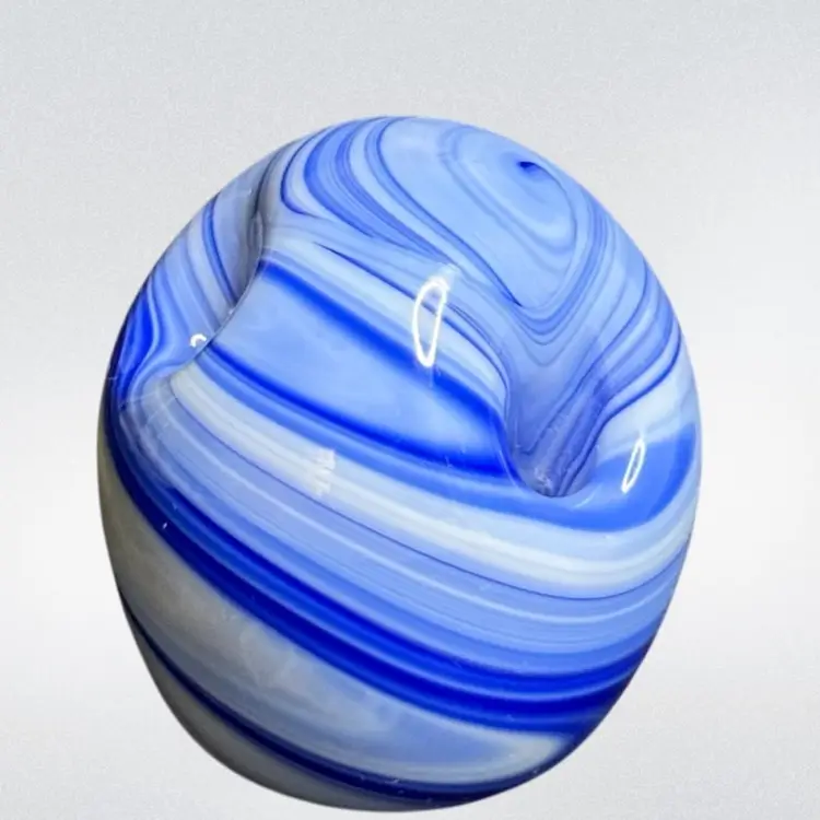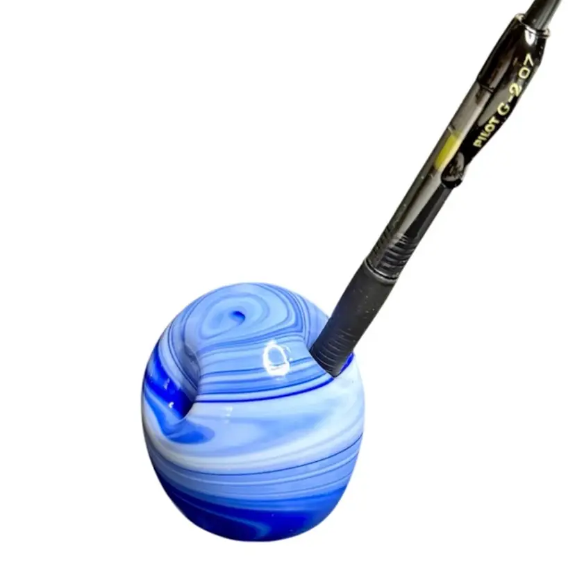 Gibson 1988 Paperweight, Pen, Pencil Holder, Cobalt Blue And White Swirl.