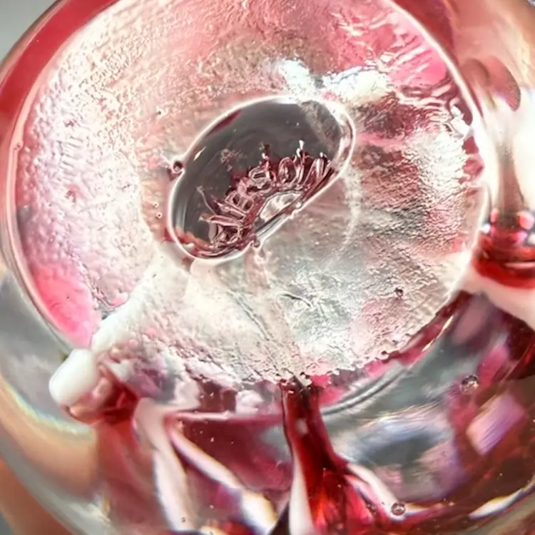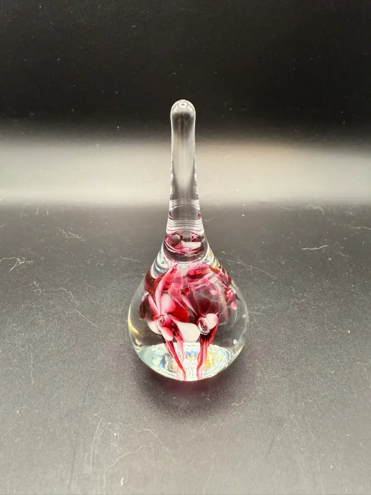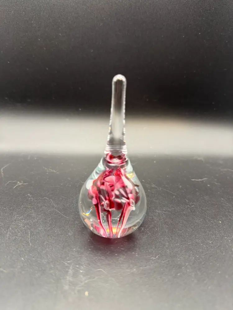 Beautiful marked teardrop red and white flower paperweight by Gibson.