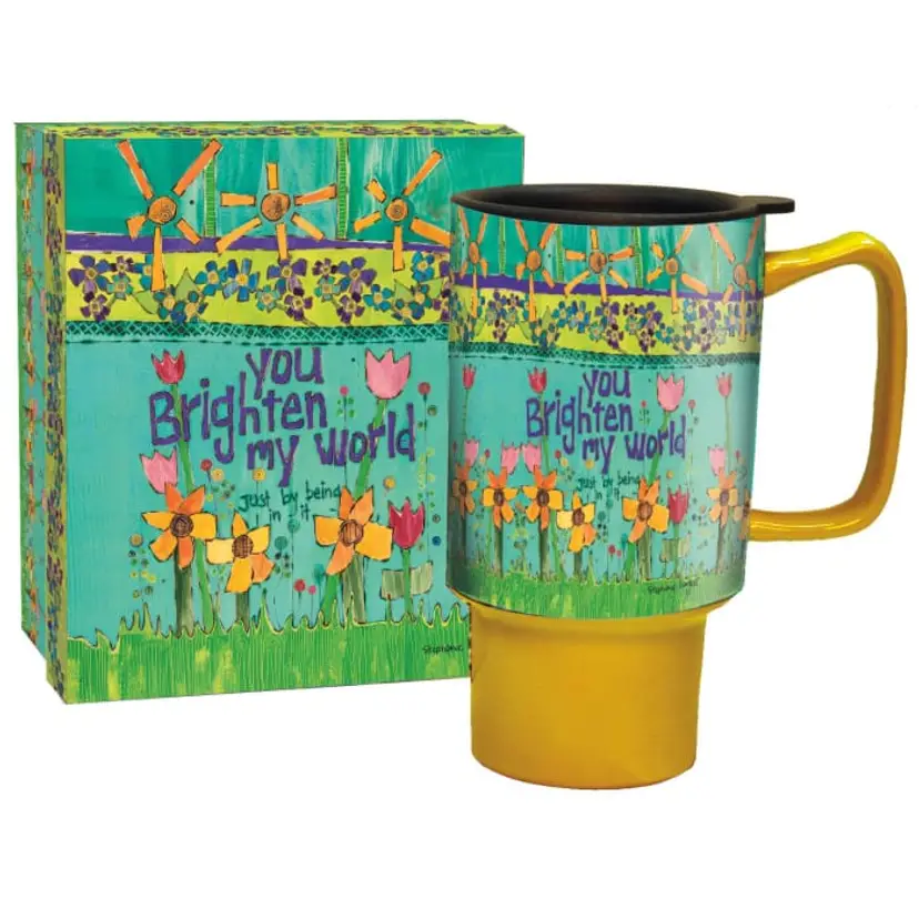Beautiful 18 oz. Oversized travel, microwave and dishwasher safe. Full-Color Art Wrapped Exterior. Coordinating box makes for a decorative way to store the mug or give it as a gift!