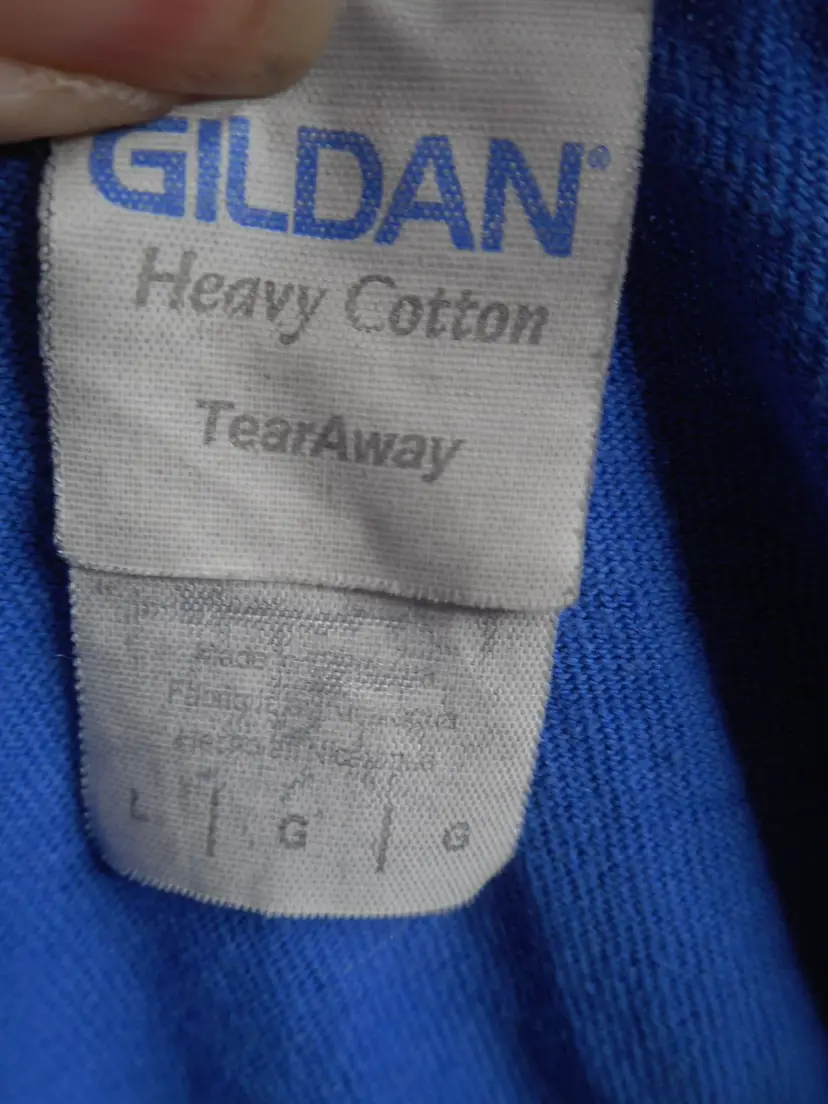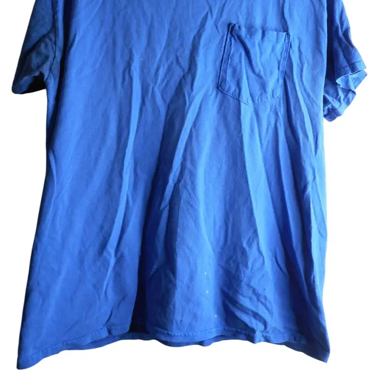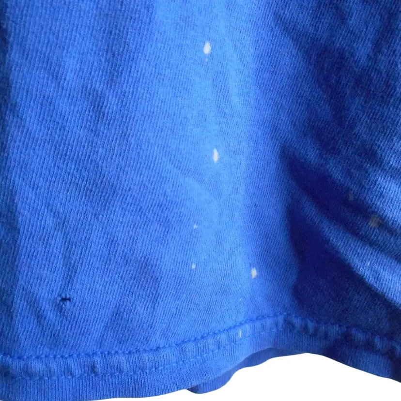 Pre-owned - a few bleach spots on the front, has a small hole along the bottom and pit darkening
