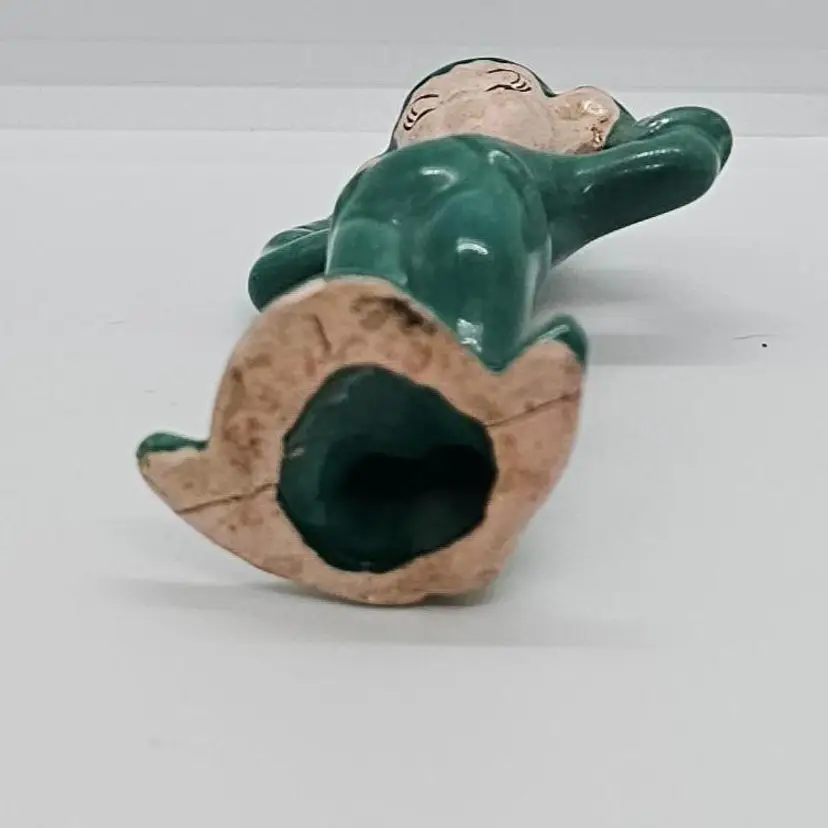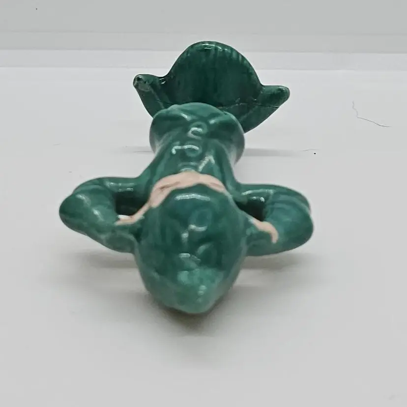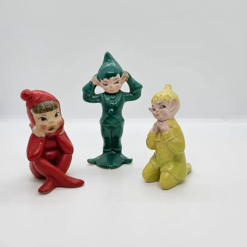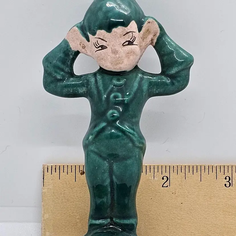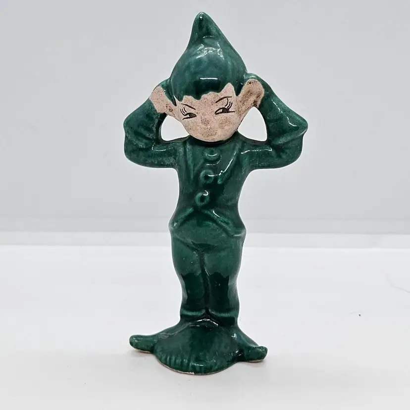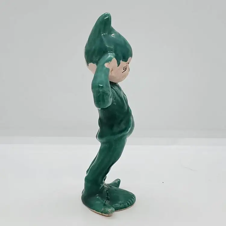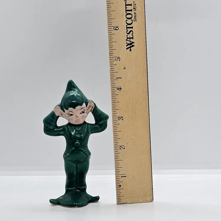 This little dude is a cutie. All ready to get into mischief. These little Pixies were always at my Grandma's when I was growing up. Please look at the last photo to she the whole group. The Red is not a Gilner, and may be Treasure Craft. Please refer to all of the photos for condition. He is great shape. Seems to have a crack across the underneath but as you can see it does not effect his ability to stand.
