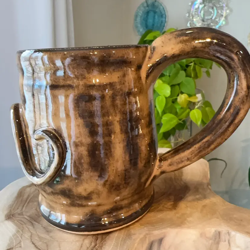 Amazing 3-D lizard mug made by West Virginia Potter Gina Howell. Signed by artist on bottom. Great to use or display! Heavy piece,weighing a pound and a half. Measures 4 1/2 inches tall. No chips or cracks, in perfect condition!