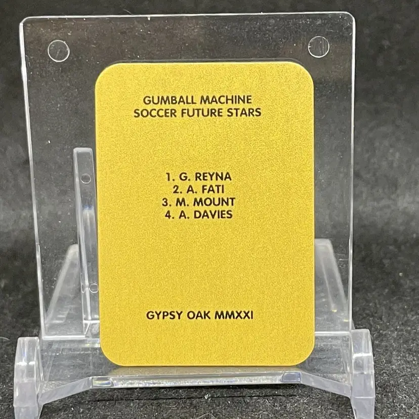 1st time buyer? Get $5 Off with code DISTRICT5 at checkout! Card as shown. All cards $20 and under ship PWE via lettertrackpro [https://www.letter-track.com/registerap.asp?AFID=8757] Card Size: Gumball Mini League: Bundesliga Autographed: No Set: Gypsy Oak Card Condition: Mint Player/Athlete: Giovanni Reyna Year Manufactured: 2021 Original/Licensed Reprint: Original Type: Sports Trading Card Sport: Soccer Features: 1st Edition, Exclusive, Limited Edition, Short Print, Mini Team: Borussia Dortmund Card Number: #1 Season: 2020-21