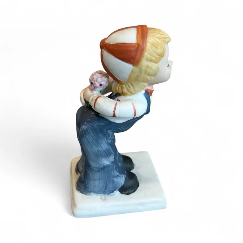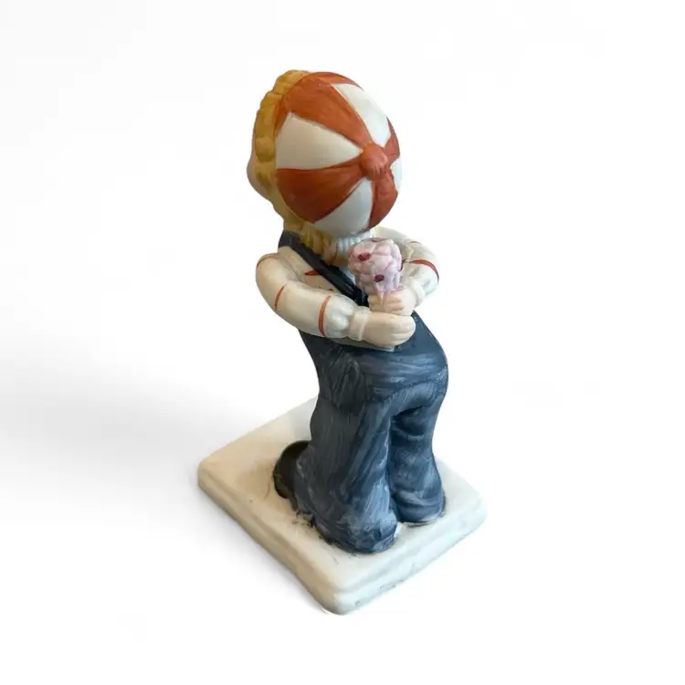 Girl Hiding Flowers Behind Back Hummel Style Porcelain Figurine