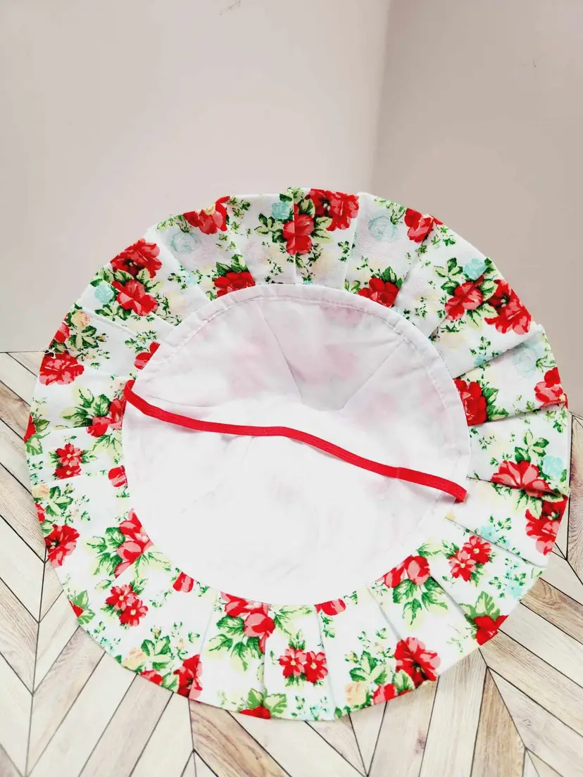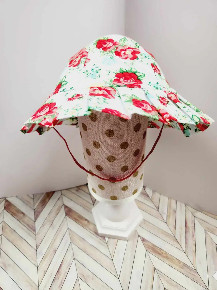 All raw edges and elastic ends are sealed within the hat so no strings to tickle baby. Beautiful and simple style, great for beach or playtime!
