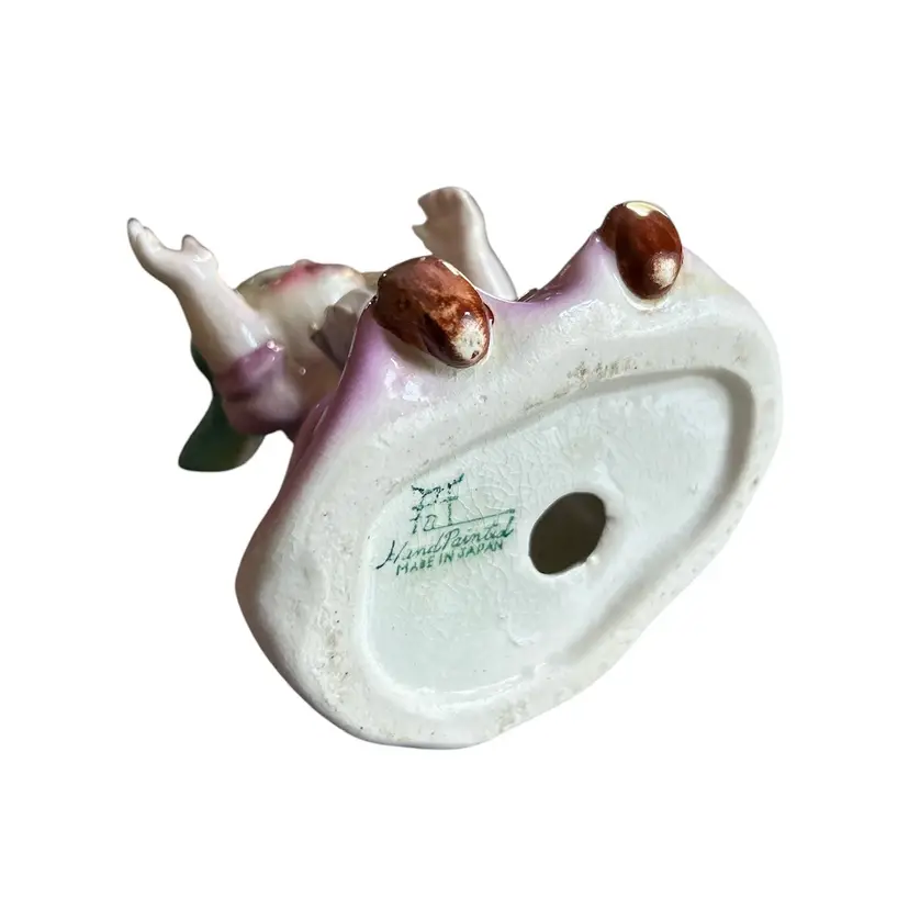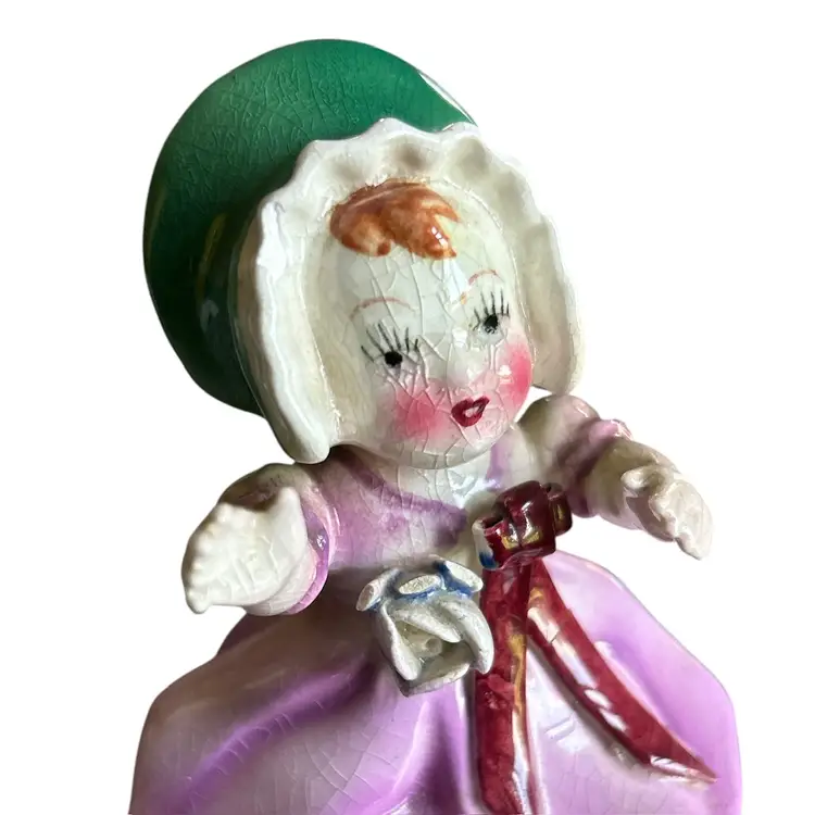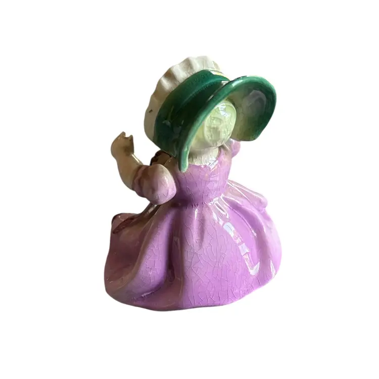 Girl with Pink Dress and Green Bonnet Ceramic Figurine