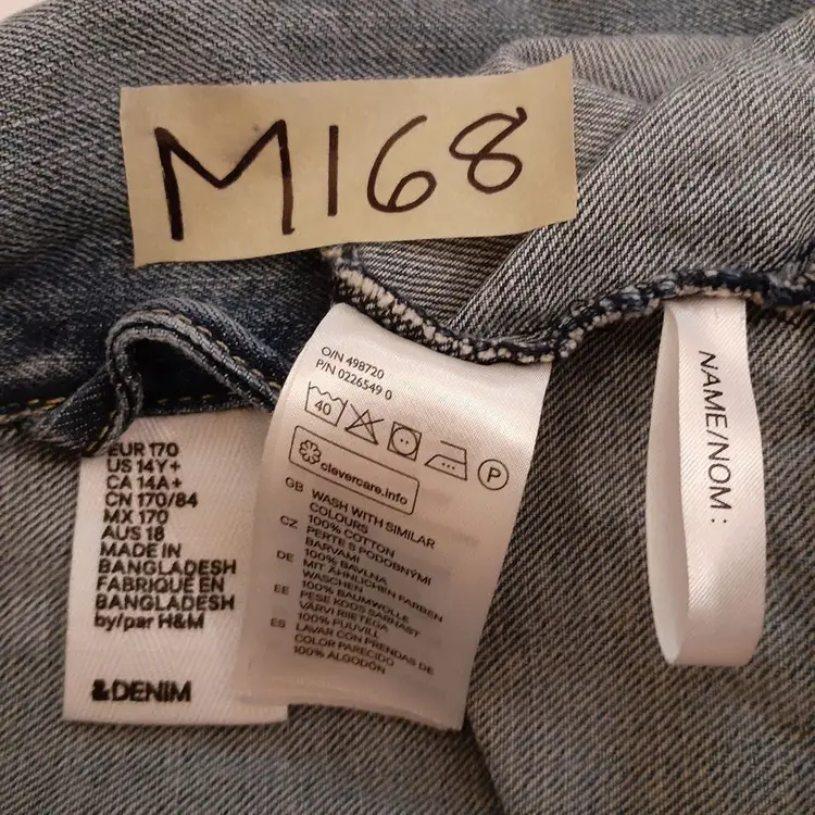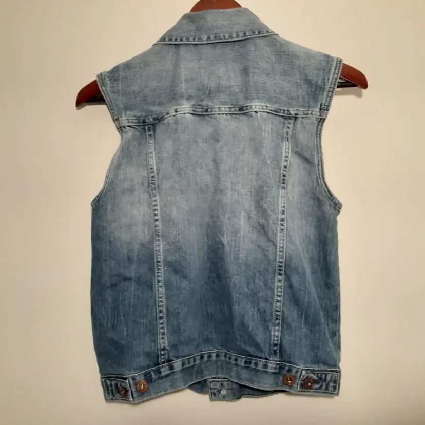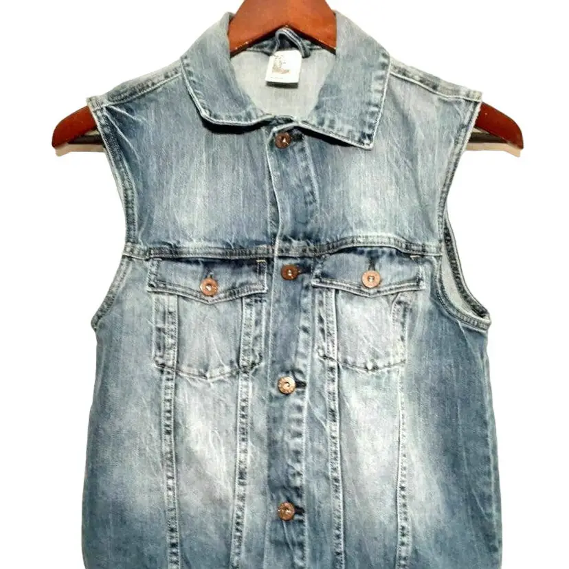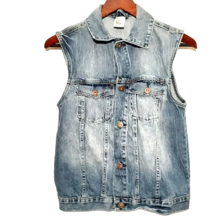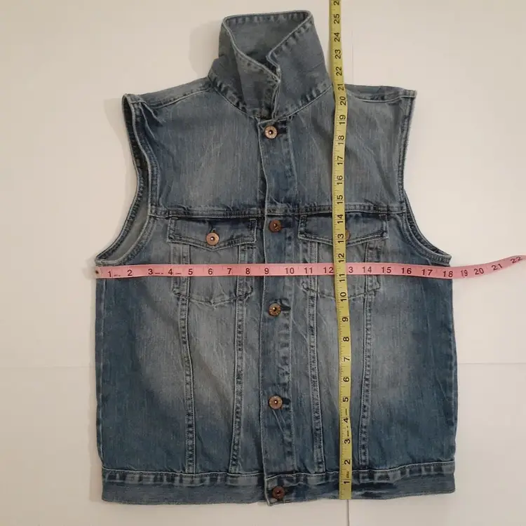 H&M girls jean vest size 14Y blue jean button up sleeveless denim see photos for flat lay measurements good pre-loved condition