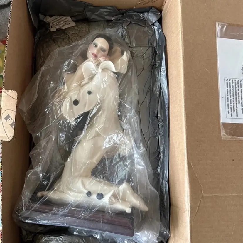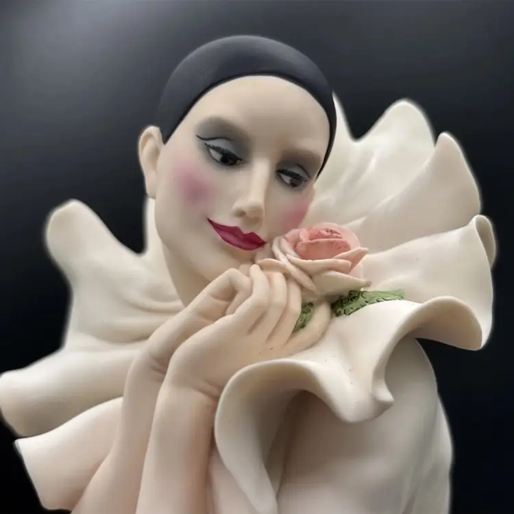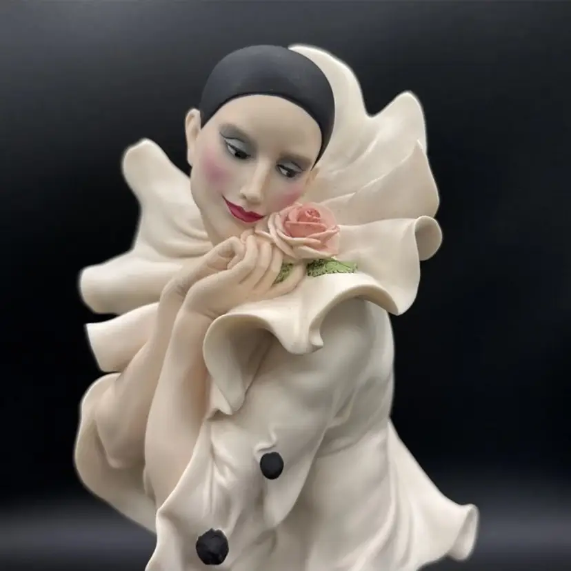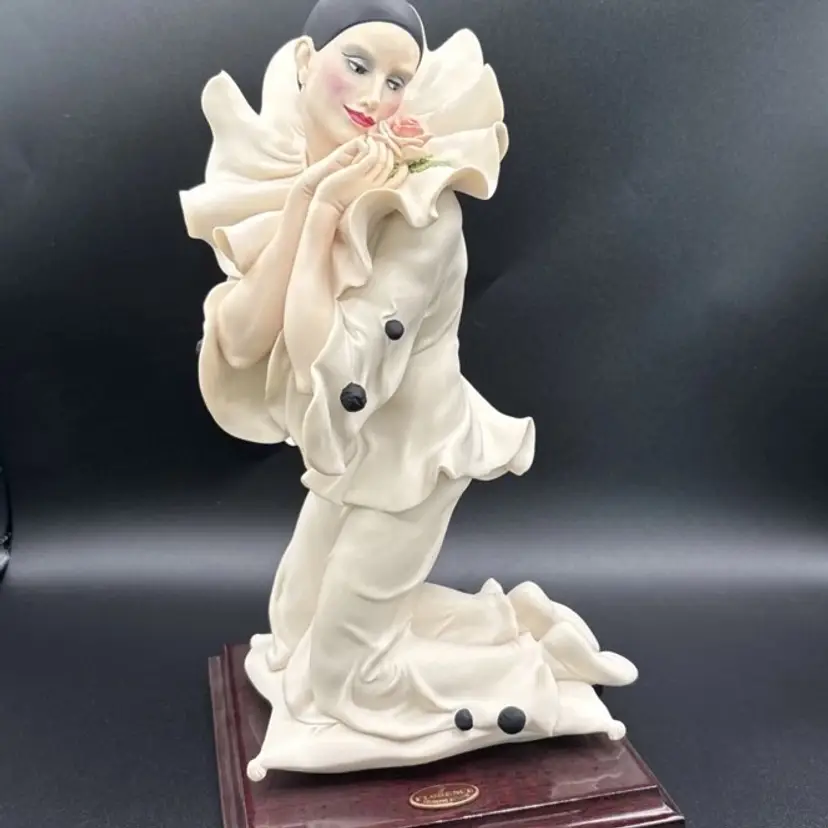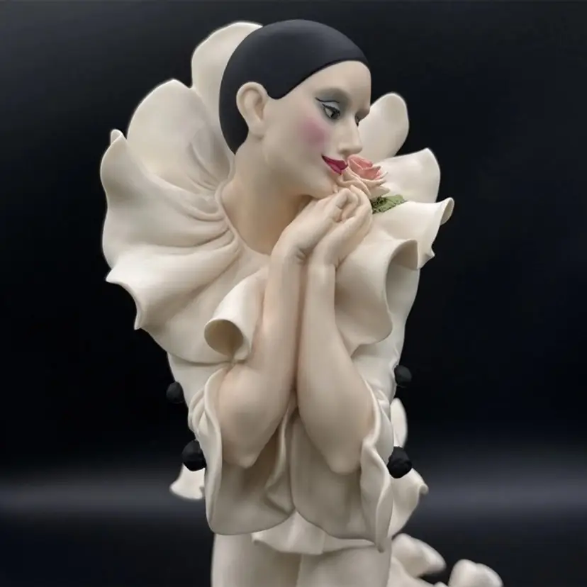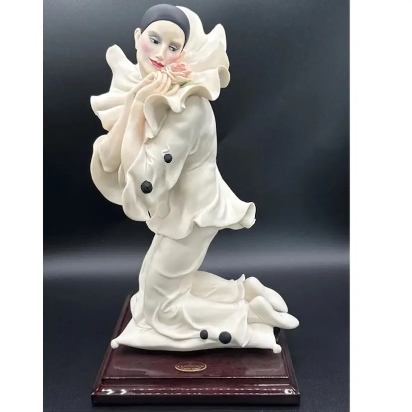 Rare and retired Giuseppe Armani sculpture depicting Pierrot and the Rose.