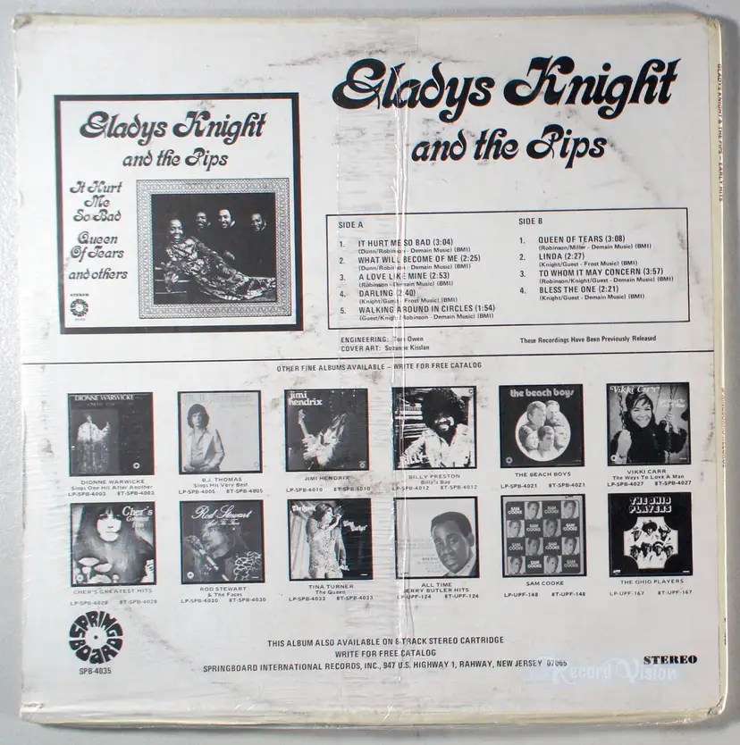 Early Hits, by Gladys Knight, is a repackaging of the album It Hurt Me So Bad and contains hits such as A Love Like Mine, Darling, and Queen Of Tears among others.