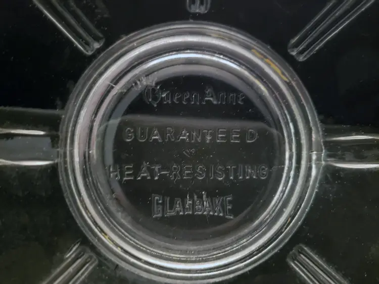 GlasBake Queen Anne Clear Glass 1930s Art Deco Retro Vintage Queen Anne Glasbake Heat Resistant Casserole Bowl Sturdy, heavy glass No Lid Heat Resistant Depression Era 1930s Made by McKee Art Deco